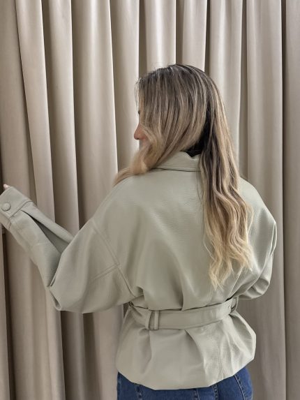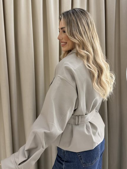 Vera Leather Belted Jacket – Grey