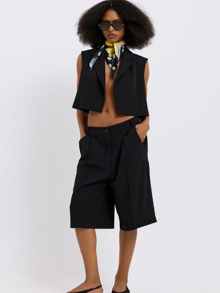 Nia Crepe Waistcoat – Black