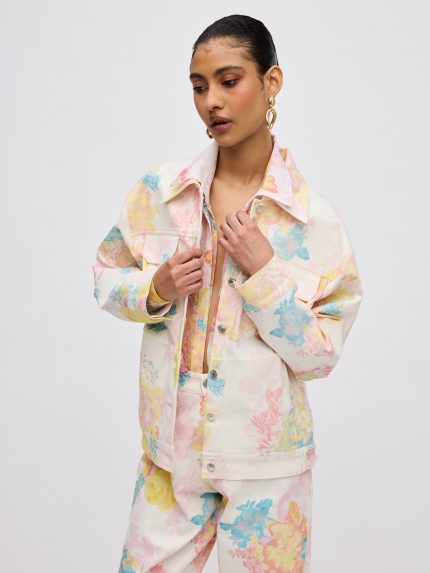 Floral Mist Denim Jacket – Print