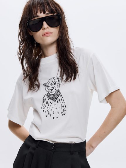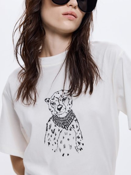 Leopard With Necklace T-Shirt – White