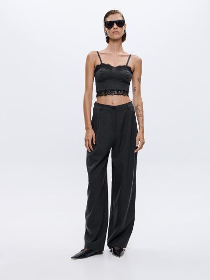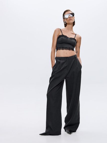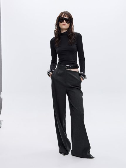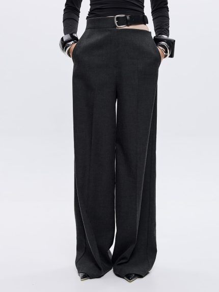 Kendy Belted Cut-out Pants – Grey/Black