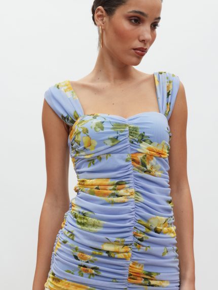 Kali Mini Sequin Dress – Indigo/Yellow Floral