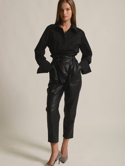 Belted Leather Pants – Black