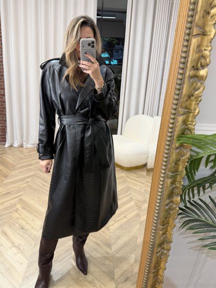 Twenty 29 Croco Leather Trenchcoat – Black