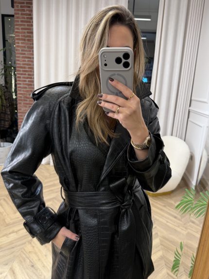 Twenty 29 Croco Leather Trenchcoat – Black