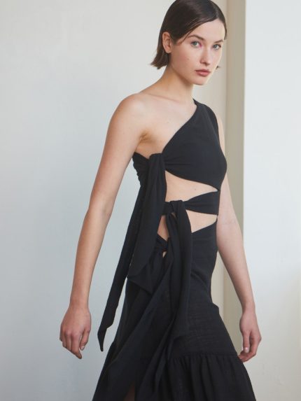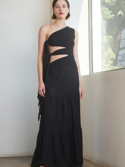 Christelle Nima Gauze Cut Out Maxi Dress – Black