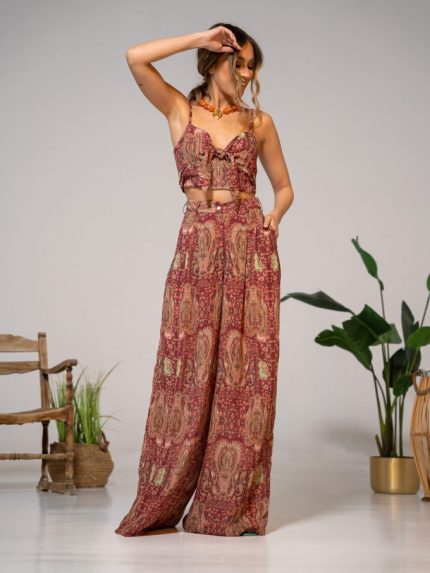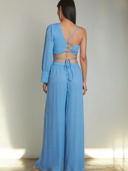 Christelle Nima High Waisted Crinkle Trousers – White / Blue / Black