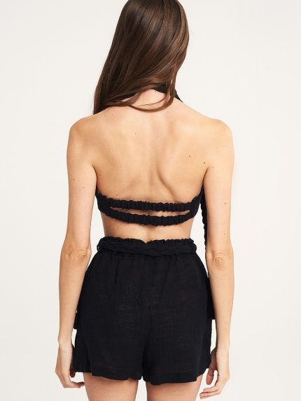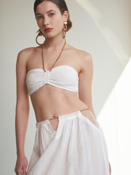 Christelle Nima Jacquard Gauze Crop Chain Top – Black / White
