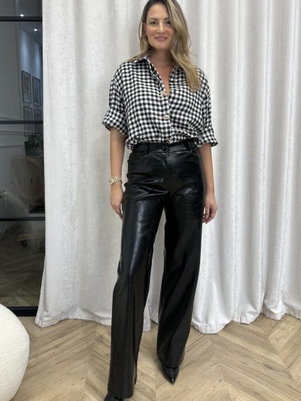 Moutaki Leather Slouchy Pants – Black/Khaki