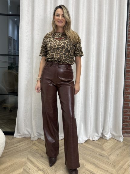 Croco Leather Pants – Brown