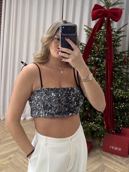Mila Sequin Top – Silver