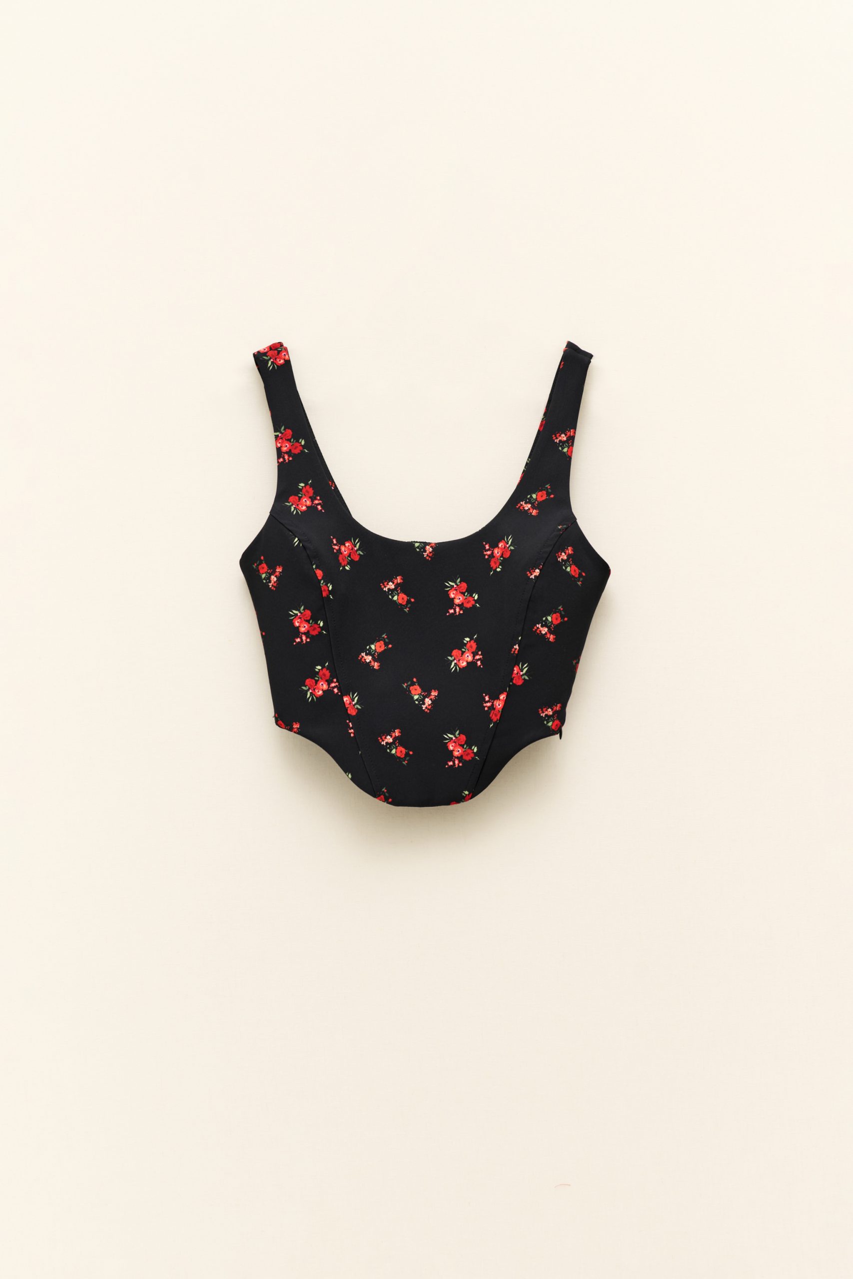 Θηλυκό και κομψό, αυτό το μαύρο κορμάκι με διακριτικό κόκκινο φλοράλ print είναι το απόλυτο κομμάτι για stylish εμφανίσεις από το πρωί έως το βράδυ. Η εφαρμοστή γραμμή του αγκαλιάζει το σώμα, αναδεικνύοντας τη σιλουέτα, ενώ η ανοιχτή στρογγυλή λαιμόκοψη και οι φαρδιές τιράντες προσφέρουν σταθερότητα και άνεση. Το ρομαντικό floral μοτίβο δίνει μια διαχρονική, girly πινελιά, κάνοντας το ιδανικό τόσο για casual όσο και για πιο βραδινά looks. Φοριέται εύκολα με ψηλόμεσο τζιν, υφασμάτινο παντελόνι ή φούστα για κομψούς συνδυασμούς.
