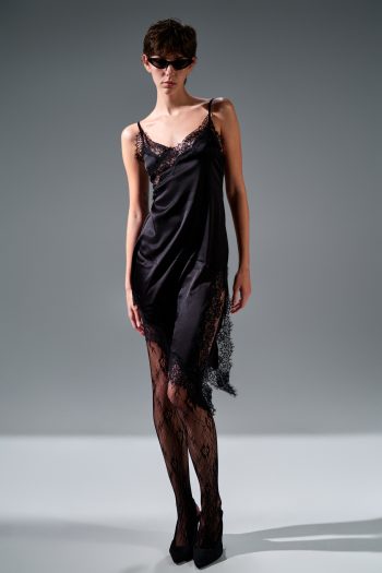 Ένα αέρινο και αισθησιακό κομμάτι που αποπνέει διακριτική θηλυκότητα. Η ασύμμετρη γραμμή του και οι λεπτομέρειες δαντέλας προσθέτουν μια δόση πολυτέλειας, κάνοντάς το ιδανικό για ιδιαίτερες εμφανίσεις ή layering με πιο casual στοιχεία.