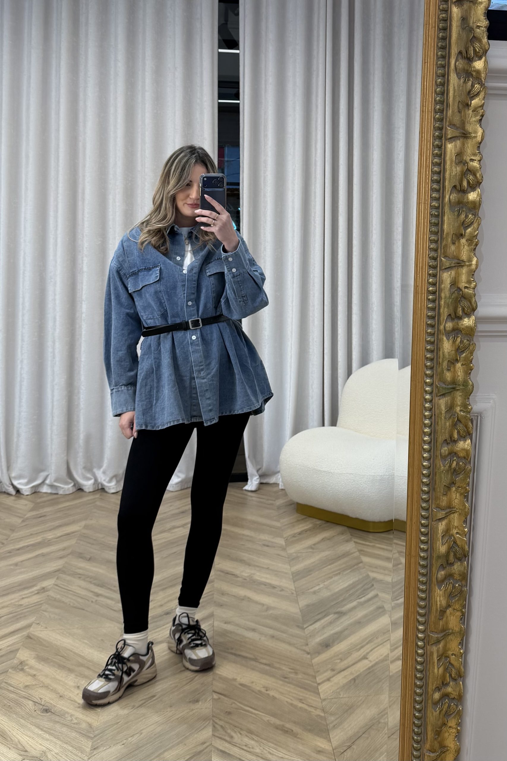 Overshirt με relaxed αλλά δομημένη αισθητική, που επαναπροσδιορίζει το everyday layering μέσα από μια editorial ματιά. Η άνετη γραμμή του δημιουργεί όγκο και κίνηση, ενώ η ζώνη στη μέση επιτρέπει εναλλαγή σιλουέτας — από χαλαρή και ανεπιτήδευτη σε πιο τονισμένη και δυναμική. Φοριέται σαν πουκάμισο, λειτουργεί σαν ελαφρύ jacket και αποπνέει έναν σύγχρονο utility χαρακτήρα, ιδανικό για looks που κινούνται ανάμεσα στο casual και το fashion-forward. Ένα κομμάτι-κλειδί που δίνει προσωπικότητα και styling ελευθερία σε κάθε εμφάνιση.