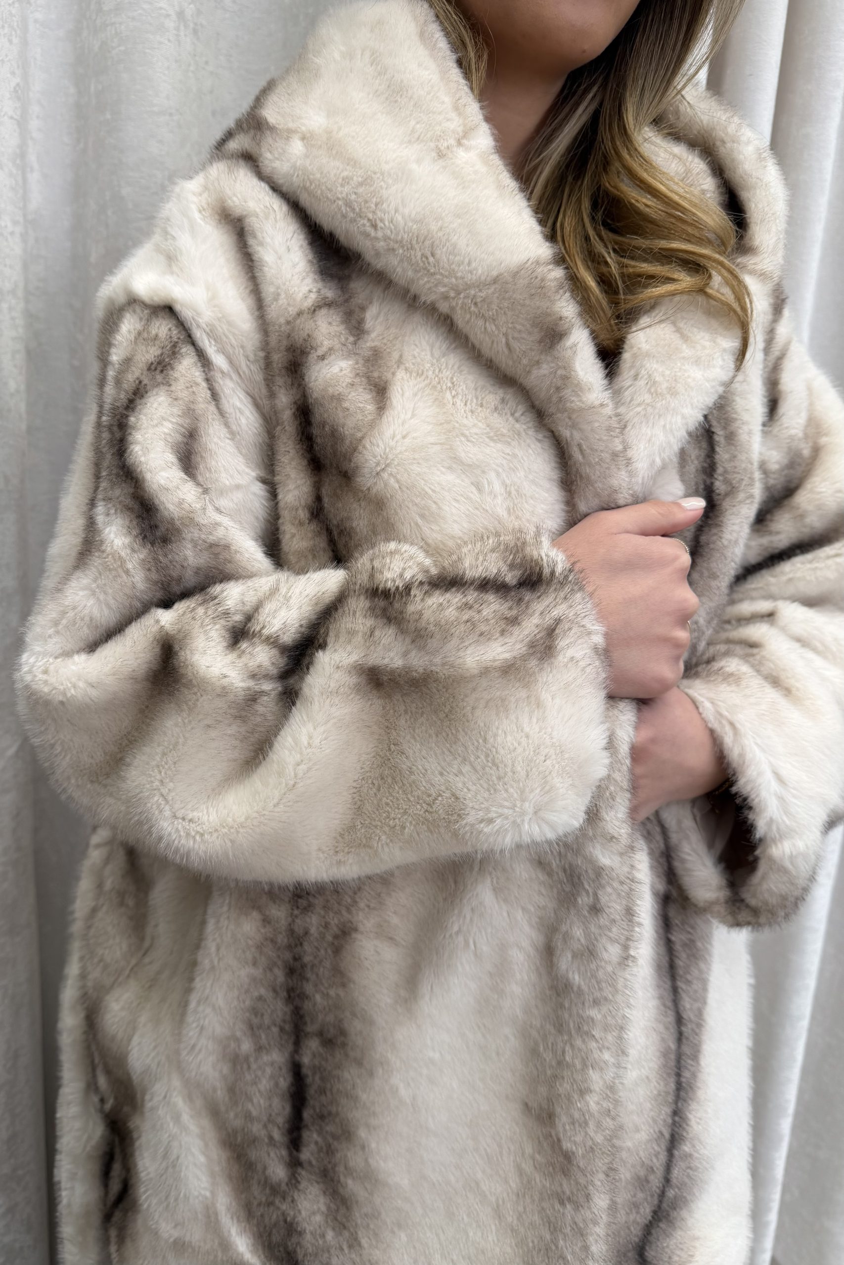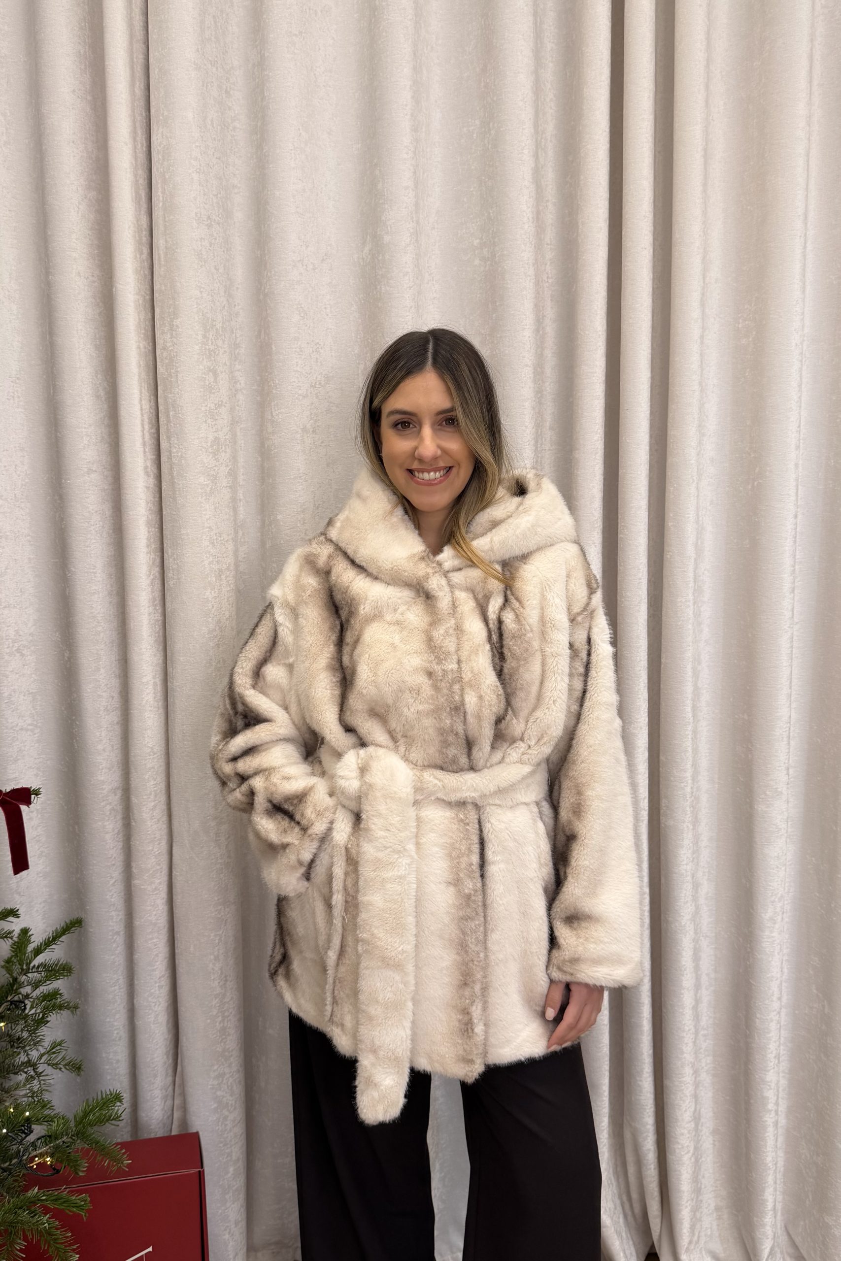 Απαλή, φωτεινή και αβίαστα κομψή, αυτή η γούνα αποτυπώνει την έννοια της διαχρονικής θηλυκότητας. Η βελούδινη υφή της δημιουργεί ένα αίσθημα πολυτελούς άνεσης, ενώ η χαλαρή εφαρμογή και η δετή ζώνη αναδεικνύουν τη σιλουέτα με διακριτικό τρόπο. Οι καθαρές γραμμές και η απαλή κίνηση του υφάσματος προσδίδουν έναν αέρα φινέτσας που δεν επιβάλλεται, αλλά κερδίζει τις εντυπώσεις. Ιδανική για elegant εμφανίσεις με σύγχρονο χαρακτήρα, αποτελεί ένα κομμάτι-επένδυση που παραμένει πάντα επίκαιρο.