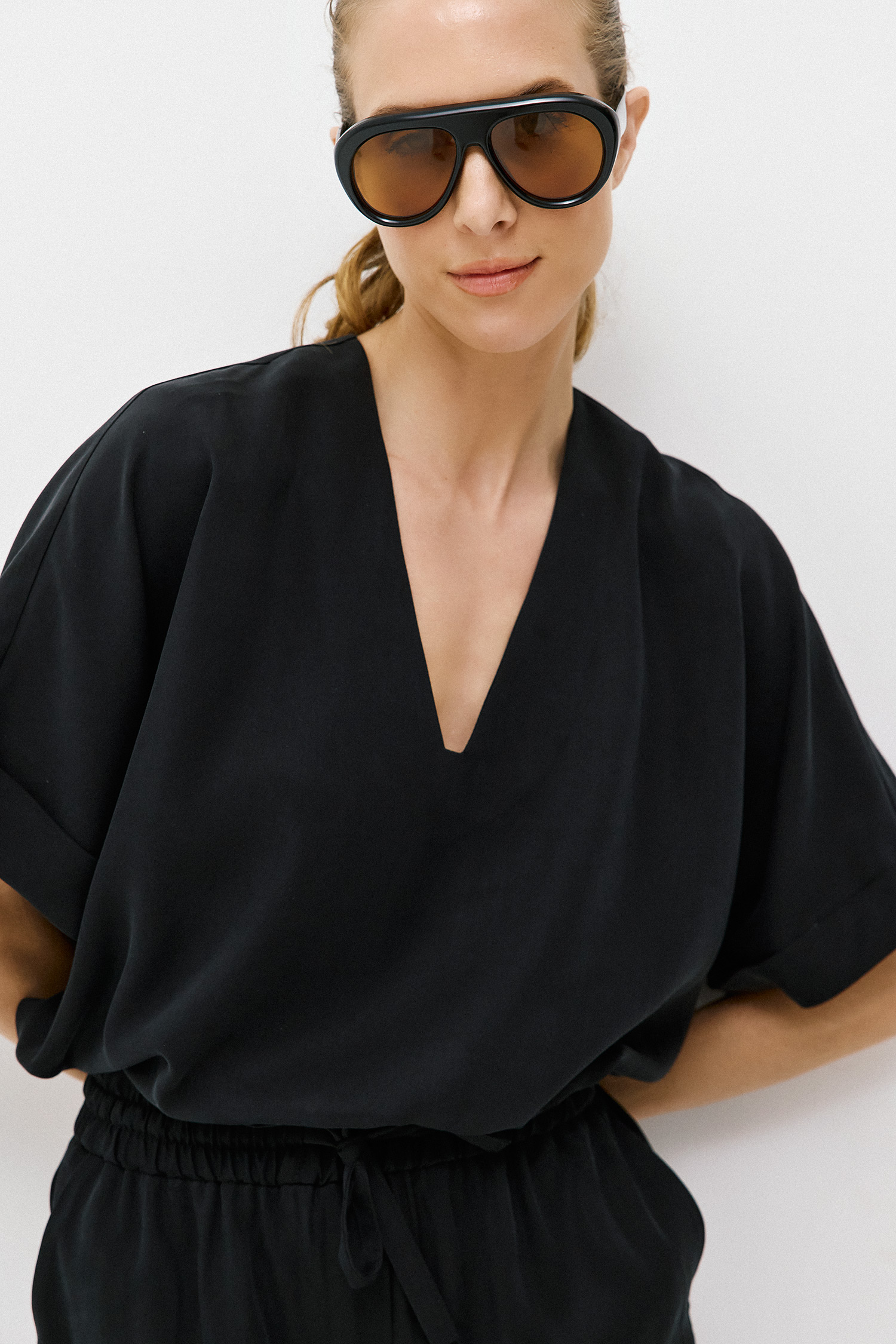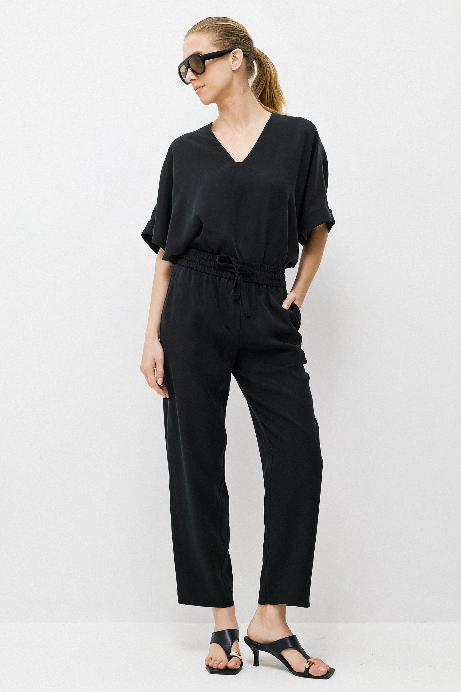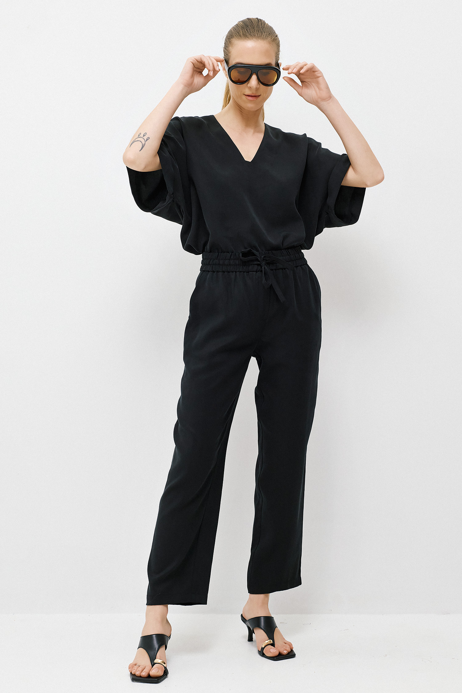 Ένα σύγχρονο σετ που εκφράζει την έννοια της effortless κομψότητας μέσα από χαλαρές γραμμές και προσεγμένη απλότητα. Το top με V λαιμόκοψη και άνετη εφαρμογή πέφτει φυσικά στο σώμα, δημιουργώντας μια αίσθηση ρευστότητας και ανεπιτήδευτης φινέτσας. Το παντελόνι ακολουθεί την ίδια φιλοσοφία, με ελαστική μέση και κορδόνι που προσθέτει λειτουργικότητα και άνεση, ενώ η ίσια γραμμή του χαρίζει ισορροπία και καθαρότητα στη σιλουέτα. Το σετ αγκαλιάζει το σώμα χωρίς να το περιορίζει, επιτρέποντας ελευθερία κινήσεων και μία σύγχρονη, relaxed αισθητική. Ιδανικό για all-day εμφανίσεις, μεταβαίνει εύκολα από casual στιγμές σε πιο προσεγμένα looks, ανάλογα με το styling. Ένα minimal yet refined σύνολο που επενδύει στη διαχρονικότητα και τη διακριτική κομψότητα.