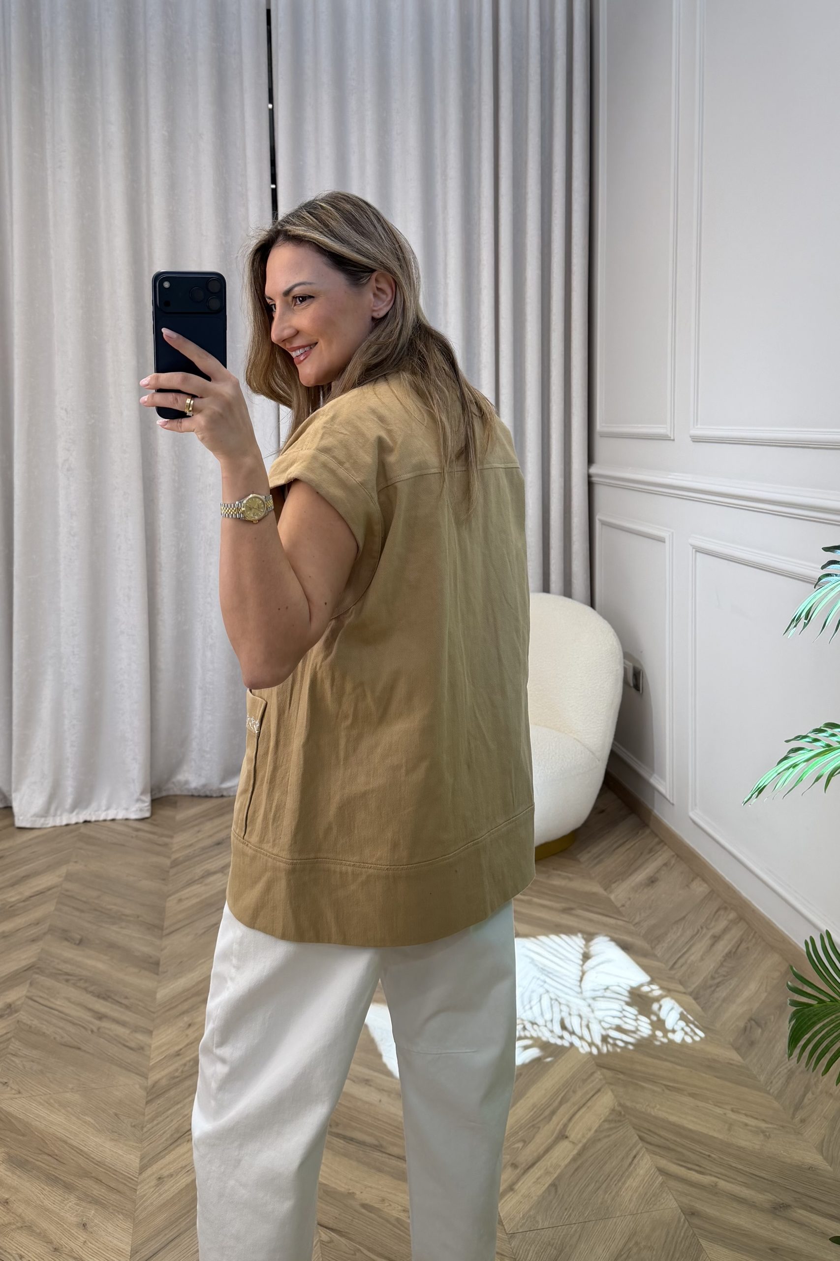 Ένα κομψό γιλέκο με σύγχρονη αισθητική που συνδυάζει άνεση και στιλ. Η χαλαρή γραμμή του χαρίζει effortless χαρακτήρα, ενώ τα κουμπιά στο μπροστινό μέρος και οι πρακτικές τσέπες προσθέτουν λειτουργικότητα και διαχρονικότητα στο σχέδιο. Οι διακριτικές λεπτομέρειες ολοκληρώνουν το κομμάτι, δίνοντας μια ιδιαίτερη πινελιά που το κάνει να ξεχωρίζει. Ιδανικό για layering, μπορεί να φορεθεί εύκολα πάνω από πουκάμισα, μπλούζες ή φορέματα, δημιουργώντας μοντέρνα looks από το πρωί μέχρι το βράδυ. Ένα versatile κομμάτι που προσθέτει χαρακτήρα σε κάθε εμφάνιση.