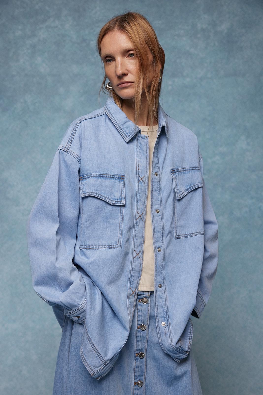 Overshirt με καθαρή, σύγχρονη γραμμή που ισορροπεί ανάμεσα στο χρηστικό και το ανεπιτήδευτα κομψό. Η χαλαρή σιλουέτα του αγκαλιάζει το σώμα χωρίς να το περιορίζει, δημιουργώντας ένα effortless αποτέλεσμα που λειτουργεί τόσο ως βασικό layer όσο και ως ελαφρύ jacket. Οι έντονες ραφές και οι μεγάλες εξωτερικές τσέπες παραπέμπουν σε workwear αναφορές, ενώ το δομημένο γιακά και το σταθερό κλείσιμο προσθέτουν αρχιτεκτονική καθαρότητα. Ένα κομμάτι ευέλικτο και διαχρονικό, σχεδιασμένο να προσαρμόζεται στο styling και στη διάθεση, αποπνέοντας μια ήρεμη αλλά σίγουρη editorial στάση.