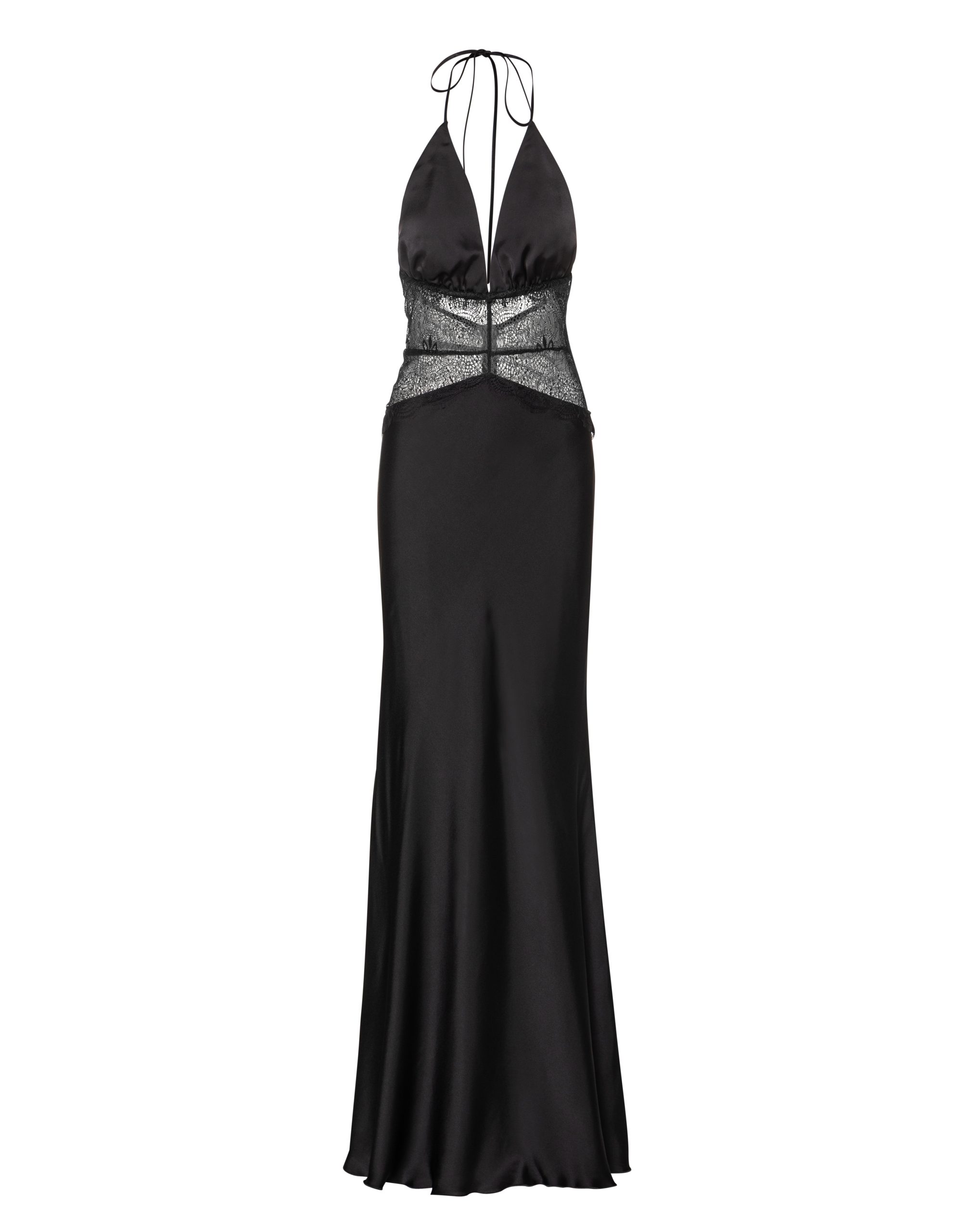 Το Dollores Dress είναι ένα μακρύ φόρεμα με ιδιαίτερο ντεκολτέ και halter λαιμό που δένει στον αυχένα. Ξεχωρίζει για τη διαφανή δαντέλα στη μέση και η ανοιχτή πλάτη με λεπτά δεσίματα που δημιουργούν ένα εντυπωσιακό, αλλά εκλεπτυσμένο αποτέλεσμα. Η γραμμή του αγκαλιάζει το σώμα αναδεικνύοντας τη σιλουέτα. Κατάλληλο για βραδινές ή επίσημες εμφανίσεις με διακριτική πολυτέλεια.