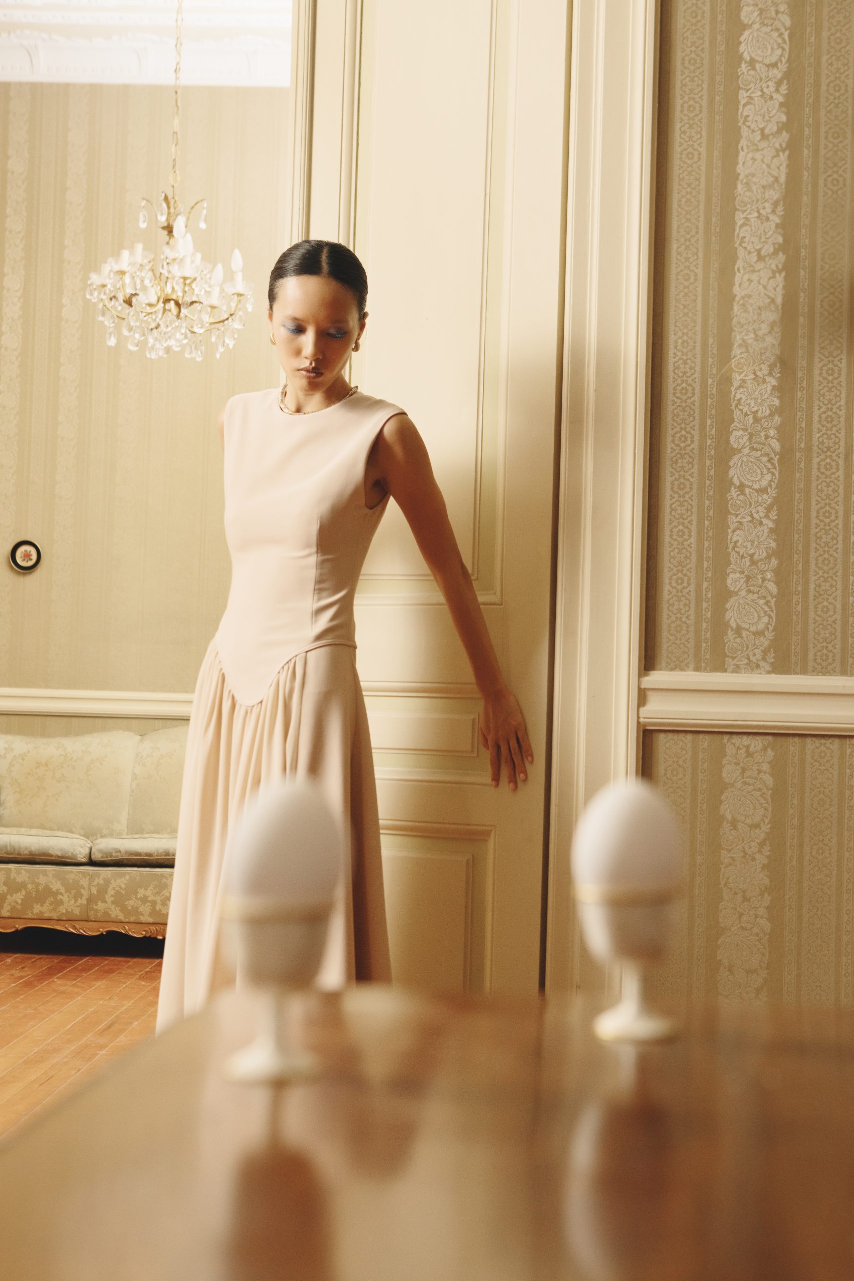 Ένα διαχρονικό κομμάτι που αποπνέει κομψότητα και απλότητα. Η λιτή γραμμή του σε συνδυασμό με τη ρευστή φούστα δημιουργεί μία αίσθηση κίνησης και φινέτσας. Ιδανικό για εμφανίσεις που απαιτούν διακριτική αλλά επιβλητική παρουσία.