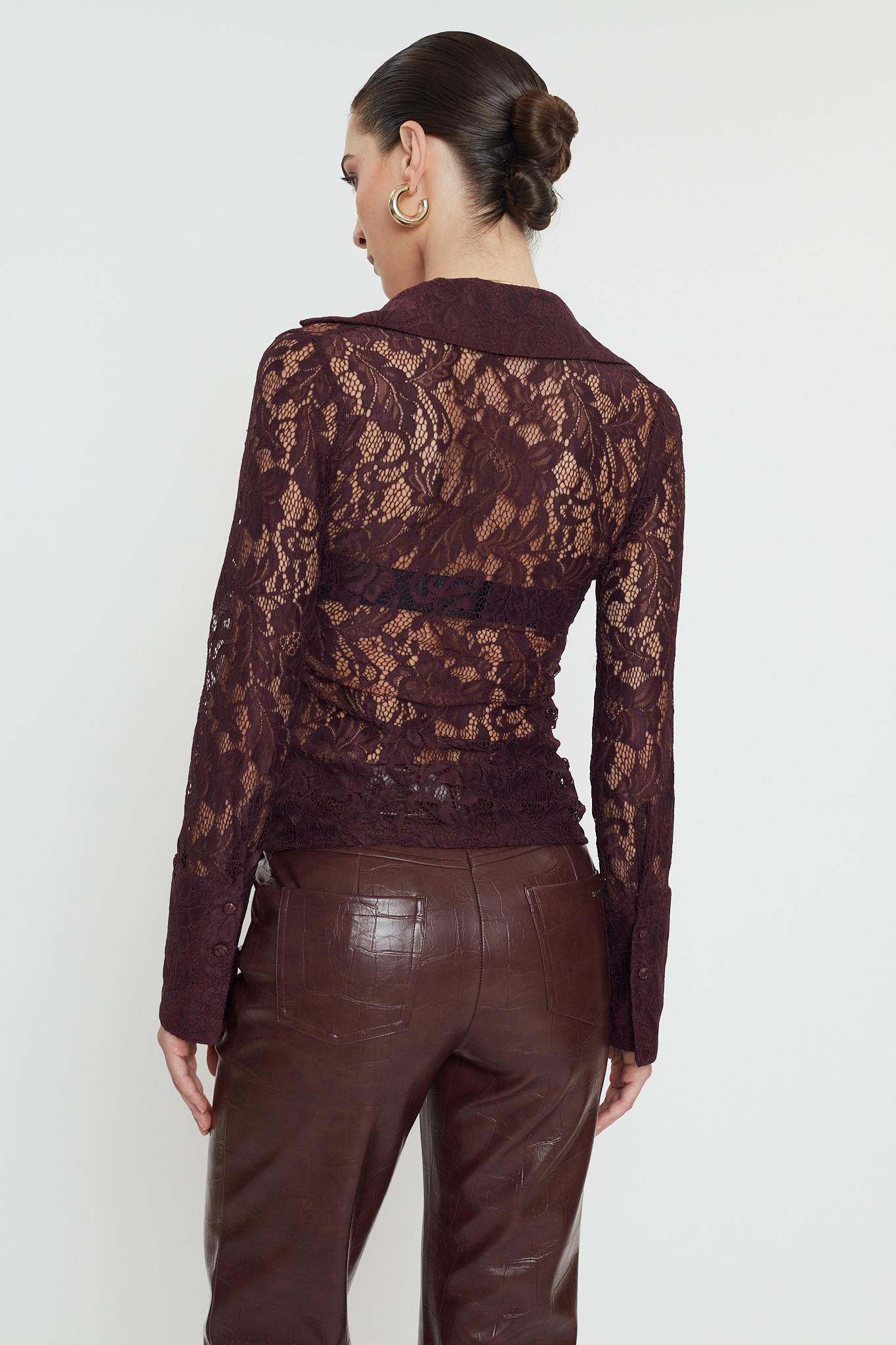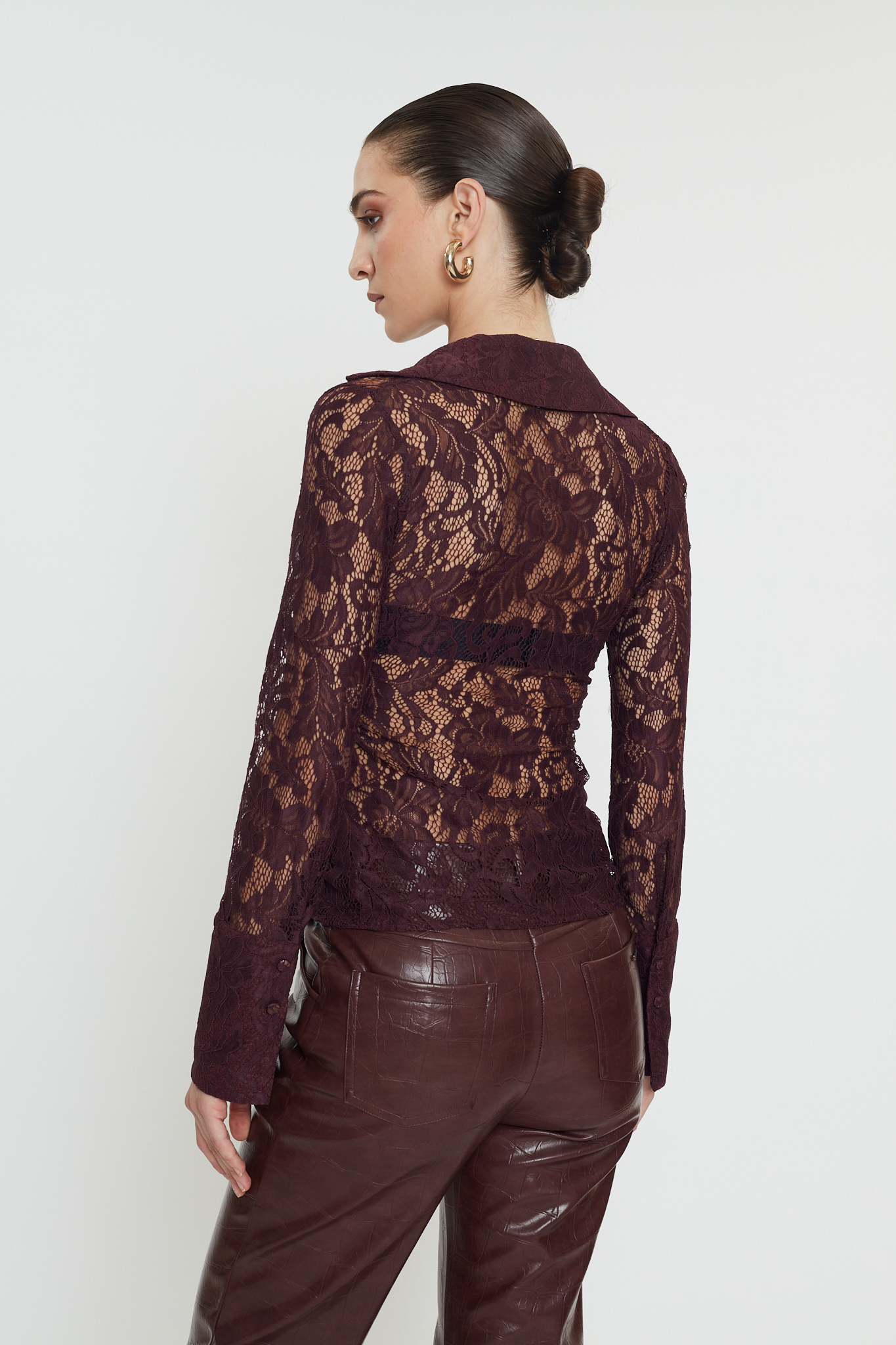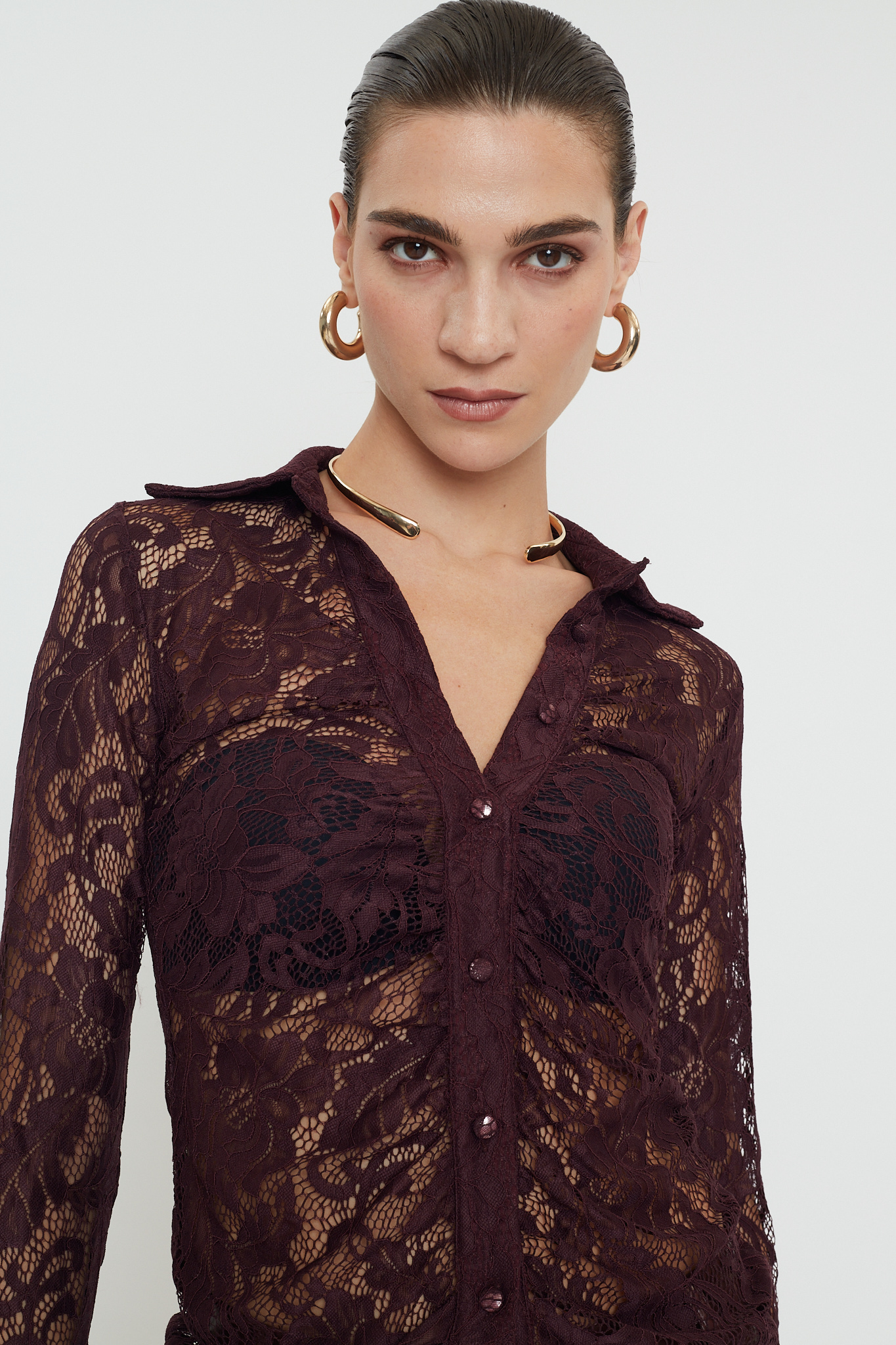 Η απόλυτη ισορροπία ανάμεσα σε ρομαντισμό και δυναμισμό. Διάφανο, με φίνα δαντέλα και κλασικό γιακά, είναι ένα κομμάτι που αναδεικνύει τη θηλυκότητα με διακριτικό αλλά επιβλητικό τρόπο. Ταιριάζει τέλεια με παντελόνια, φούστες ή μέσα από σακάκια για πιο glam αισθητική.