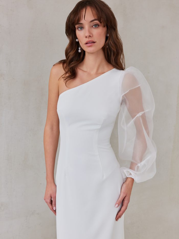 - Με εναν ώμο με εντυπωσιακό μανίκι από οργάντζα