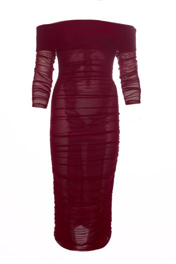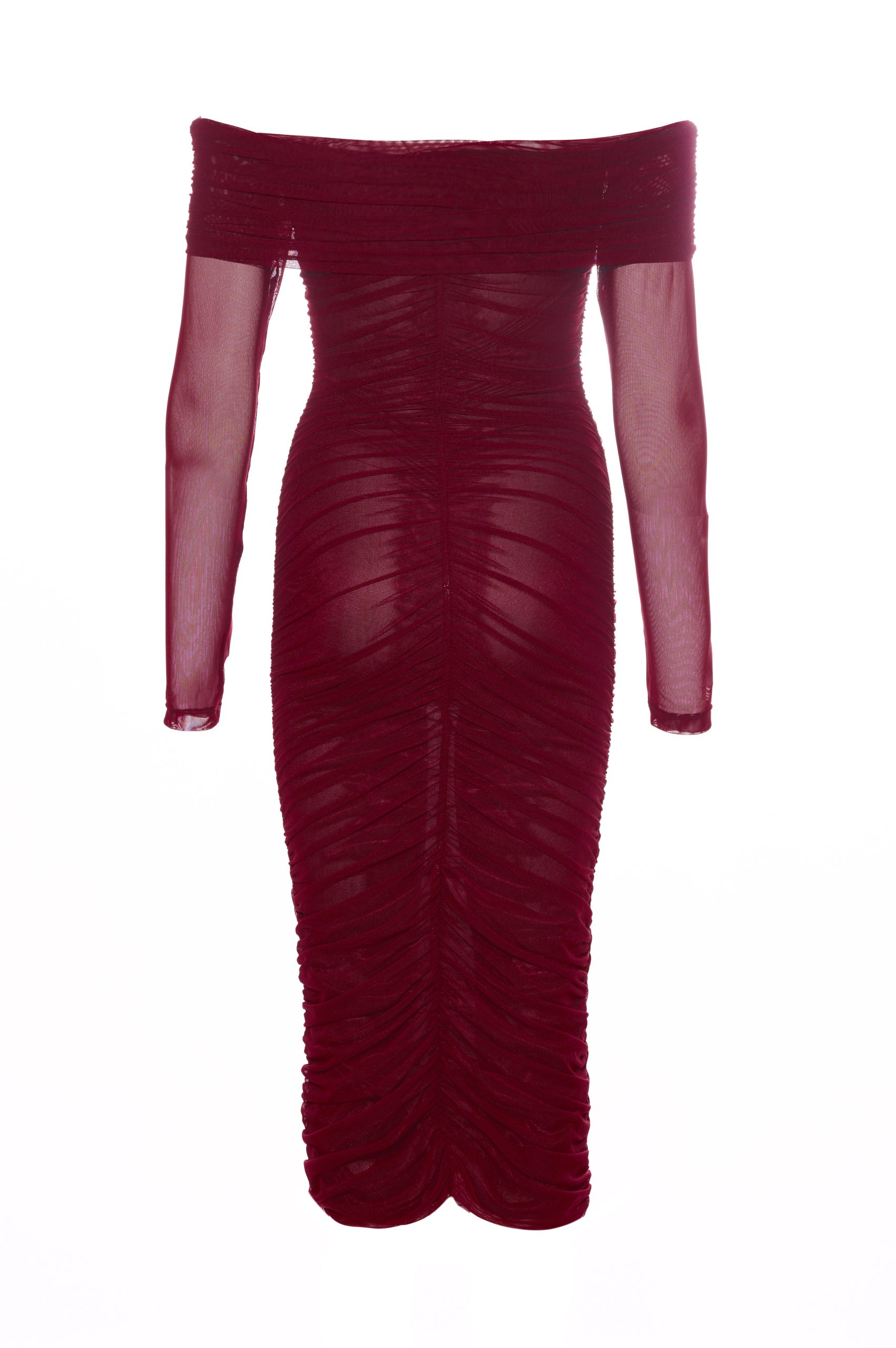 Home Clothes Dresses Emily Off Shoulder Midi Dress – Wine