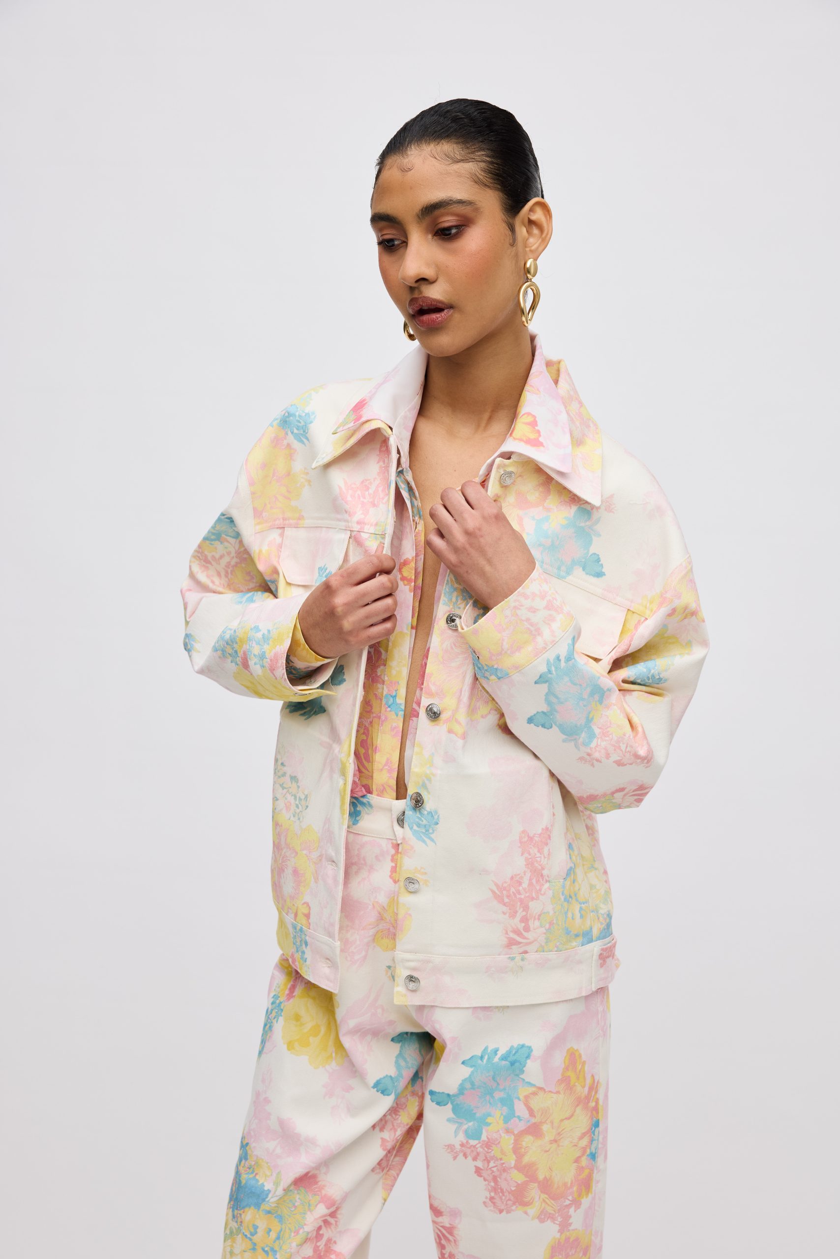 Floral Mist Denim Jacket – Print