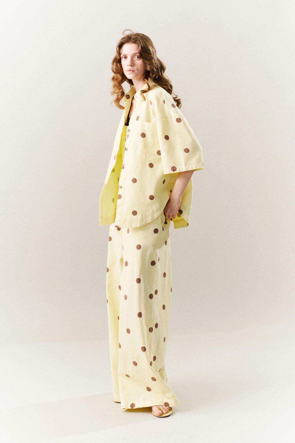 Ένα playful πουκάμισο που ισορροπεί ιδανικά ανάμεσα στο relaxed tailoring και τη διαχρονική κομψότητα. Η χαλαρή γραμμή του και το κλασικό γιακάς συνδυάζονται με το διακριτικό μοτίβο polka dot, δημιουργώντας ένα κομμάτι με ανεπιτήδευτο χαρακτήρα και σύγχρονη αισθητική. Η ελαφριά υφή του το καθιστά ιδανικό για layering ή για να φορεθεί μόνο του, προσφέροντας effortless στυλ από το πρωί μέχρι το βράδυ. Συνδύασέ το με denim για casual looks ή με tailored παντελόνια για πιο refined εμφανίσεις. Φοριέται και ανοιχτό πάνω από basic tops για πιο relaxed layering.
