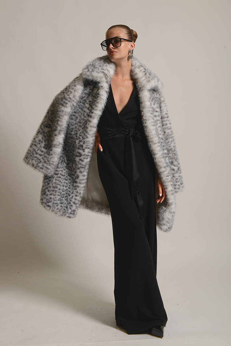 Μια statement οικολογική γούνα που απογειώνει τη σύγχρονη πολυτέλεια με απόλυτα fashion-forward χαρακτήρα. Η πυκνή, αφράτη υφή της δημιουργεί εντυπωσιακό όγκο χωρίς βάρος, ενώ το ανάλαφρο animal-inspired μοτίβο σε γκρι τόνους χαρίζει κομψότητα με δυναμική προσωπικότητα. Η oversized γραμμή της επιτρέπει στο κομμάτι να «αγκαλιάζει» φυσικά το σώμα, προσθέτοντας μια αίσθηση ανεπιτήδευτης δύναμης και ζεστασιάς. Ένα outerwear που τραβάει τα βλέμματα, σχεδιασμένο για να φοριέται τόσο πάνω από βραδινά looks όσο και για να αναβαθμίζει τα καθημερινά σύνολα. Είναι η γούνα που μεταμορφώνει κάθε εμφάνιση σε fashion moment – το απόλυτο must-have για μια χειμερινή capsule wardrobe με χαρακτήρα και attitude.