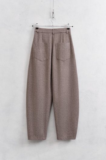 Με σύγχρονη, αρχιτεκτονική γραμμή, αυτό το μάλλινο παντελόνι επαναπροσδιορίζει την έννοια της άνετης κομψότητας. Η ελαφρώς balloon σιλουέτα του προσφέρει κίνηση και χαρακτήρα, ενώ η ραφή στο κέντρο χαρίζει δομή και επιμήκυνση. Ιδανικό για να συνδυαστεί με το αντίστοιχο σακάκι για ένα εκλεπτυσμένο total look με minimal αισθητική.