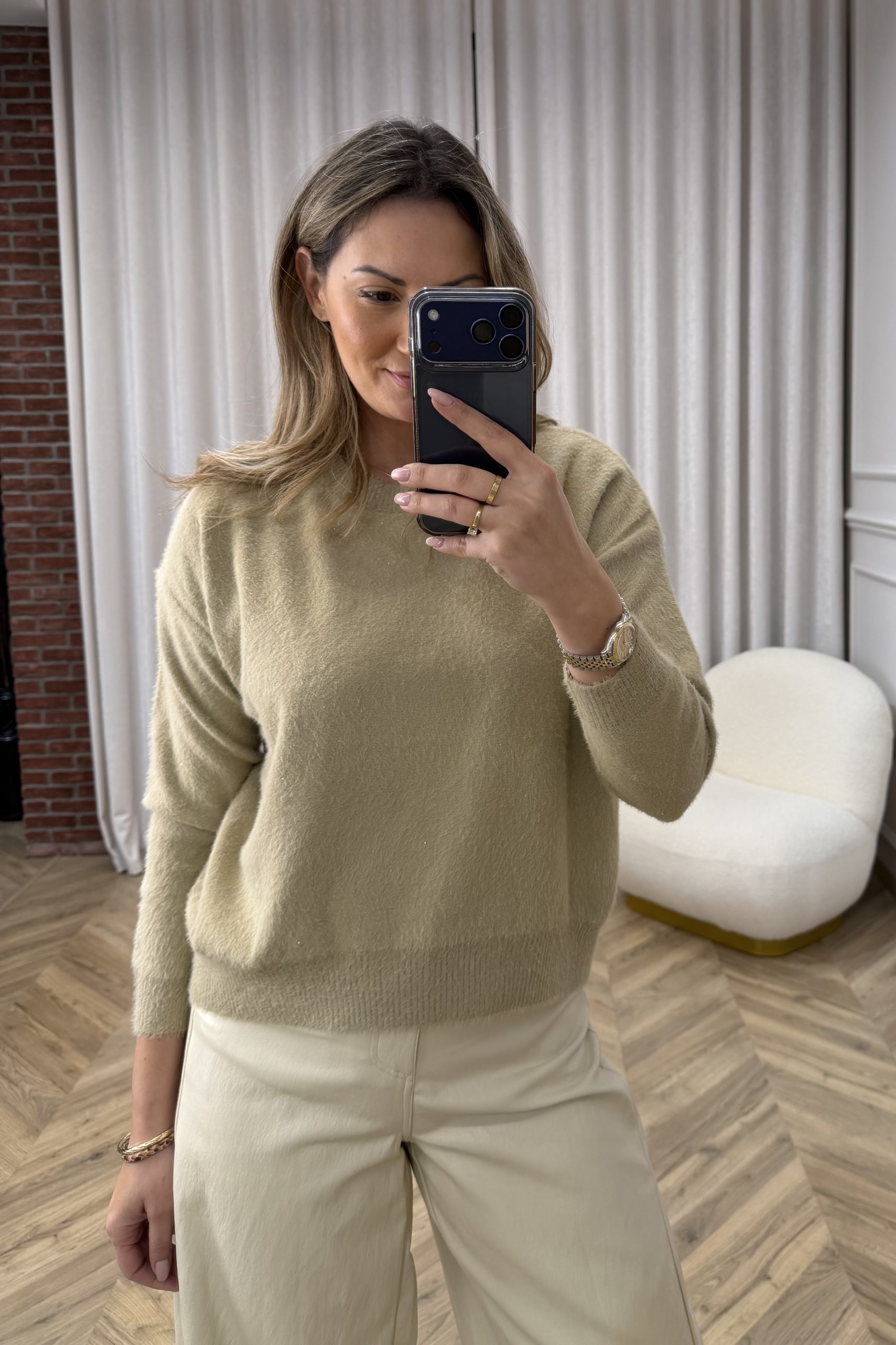 Ένα πλεκτό που αποδεικνύει πως η λάμψη δεν χρειάζεται ποτέ να είναι εκκωφαντική για να είναι ακαταμάχητη. Η υφή του, απαλή και φίνα, λειτουργεί σαν καμβάς για τις μικροσκοπικές παγιέτες και τα διάσπαρτα glitter που αιχμαλωτίζουν το φως με τον πιο διακριτικά πολυτελή τρόπο. Δεν φωνάζει· ψιθυρίζει κομψότητα. Η σιλουέτα του κρατά μια ανεπιτήδευτη χαλαρότητα, αφήνοντας το βλέμμα να ταξιδεύει στην επιφάνειά του κάθε φορά που κινείσαι. Είναι το είδος του πλεκτού που μοιάζει να έχει γεννηθεί μέσα από τις σελίδες ενός holiday editorial: cozy, αλλά με έναν αέρα high fashion που σε ανεβάζει ένα επίπεδο χωρίς καμία προσπάθεια. Ένα κομμάτι που ενώνει την άνεση με τη λάμψη—εκεί ακριβώς όπου η σύγχρονη θηλυκότητα βρίσκει την πιο όμορφη ισορροπία της.
