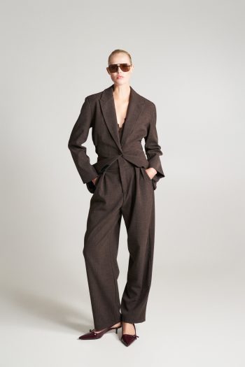 Ένα παντελόνι που αποπνέει τη δύναμη της απλότητας. Με καθαρές γραμμές, ρευστή κίνηση και διακριτικές πιέτες, επαναπροσδιορίζει το σύγχρονο tailoring μέσα από μια ήρεμη κομψότητα. Το φαρδύ ζωνάρι τονίζει τη μέση, ενώ η χαλαρή σιλουέτα προσφέρει άνεση χωρίς να χάνει τη δομή της. Φτιαγμένο για τη γυναίκα που κινείται ανάμεσα σε ρυθμούς πόλης και στιγμές έμπνευσης, το παντελόνι συνδυάζεται ιδανικά με το αντίστοιχο blazer, δημιουργώντας ένα απόλυτα αρμονικό σύνολο — minimal, effortless και με χαρακτήρα.