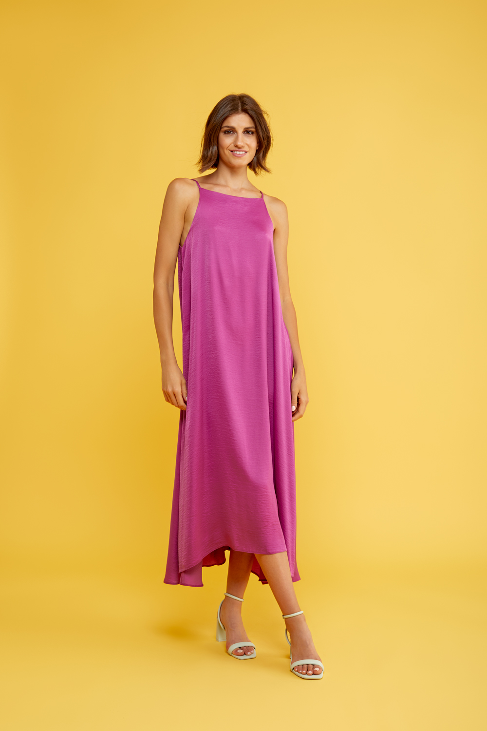Ένα φόρεμα που αποτυπώνει την ουσία της διαχρονικής θηλυκότητας μέσα από μια σύγχρονη, ρευστή αισθητική. Η ανάλαφρη γραμμή του αγκαλιάζει απαλά το σώμα, δημιουργώντας μια σιλουέτα που κινείται με φυσική χάρη και κομψότητα, ενώ το βαθύ ντεκολτέ αναδεικνύει διακριτικά το μπούστο, προσθέτοντας μια αίσθηση εκλεπτυσμένου αισθησιασμού. Η μέση τονίζεται μέσα από την υφασμάτινη ζώνη, η οποία δένει απαλά και διαμορφώνει το σώμα χωρίς να περιορίζει, χαρίζοντας ισορροπία ανάμεσα στη δομή και την ελευθερία κίνησης. Το ύφασμα πέφτει ρευστά, δημιουργώντας απαλές πτυχώσεις που ζωντανεύουν σε κάθε βήμα, ενώ το ασύμμετρο τελείωμα προσθέτει μια σύγχρονη, ανεπιτήδευτη δυναμική στο σύνολο. Ιδανικό για εμφανίσεις που απαιτούν κομψότητα χωρίς προσπάθεια, αυτό το φόρεμα προσαρμόζεται εύκολα από πιο καθημερινές στιγμές έως πιο ιδιαίτερες περιστάσεις, αποπνέοντας έναν αέρα διακριτικής πολυτέλειας και φυσικής αυτοπεποίθησης.