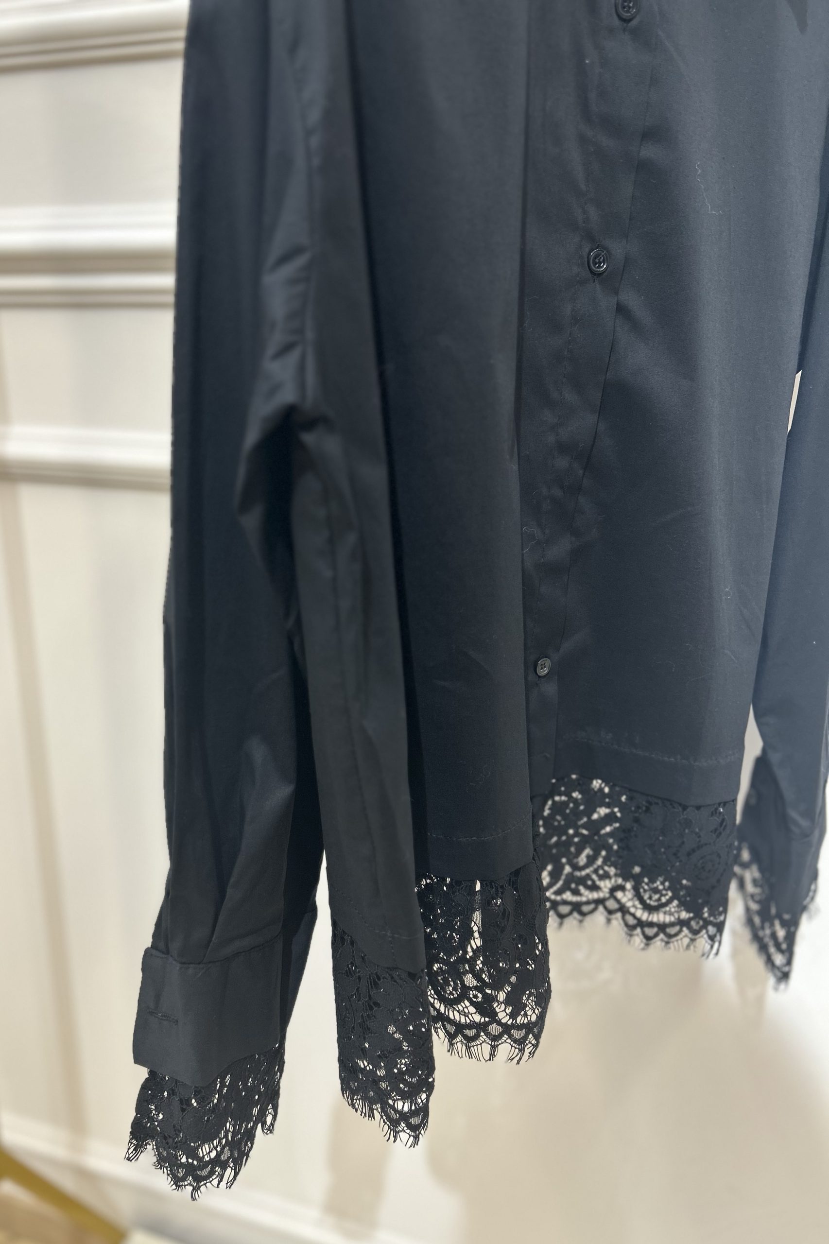 Ένα statement basic που επαναπροσδιορίζει το casual chic. Η καθαρή γραμμή του πουκαμίσου συναντά τη ρομαντική διάθεση της δαντέλας, δημιουργώντας μια παιχνιδιάρικη αντίθεση ανάμεσα στη λιτότητα και τη φινέτσα. Το διακριτικό τελείωμα από δαντέλα προσθέτει μια αίσθηση κίνησης και υφής, μεταμορφώνοντας το κλασικό πουκάμισο σε ένα fashion-forward κομμάτι που συνδυάζεται άψογα με tailored παντελόνια ή denim.