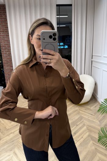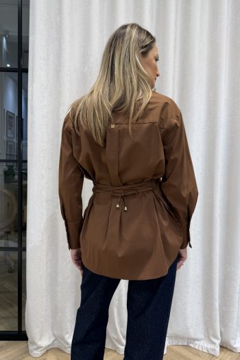 Minimal αλλά με fashion twist — το καφέ πουκάμισο απογειώνεται μέσα από τη διαχρονική του γραμμή και τη θηλυκή λεπτομέρεια δεσίματος στο πίσω μέρος. Το structured ύφασμά του αγκαλιάζει το σώμα με κομψότητα, ενώ το ρυθμιζόμενο κορδόνι στη μέση αναδεικνύει τη σιλουέτα δημιουργώντας ένα άψογα ισορροπημένο αποτέλεσμα. Ιδανικό τόσο για office looks όσο και για πιο relaxed εμφανίσεις, αποτελεί το απόλυτο must-have κομμάτι της γκαρνταρόμπας.