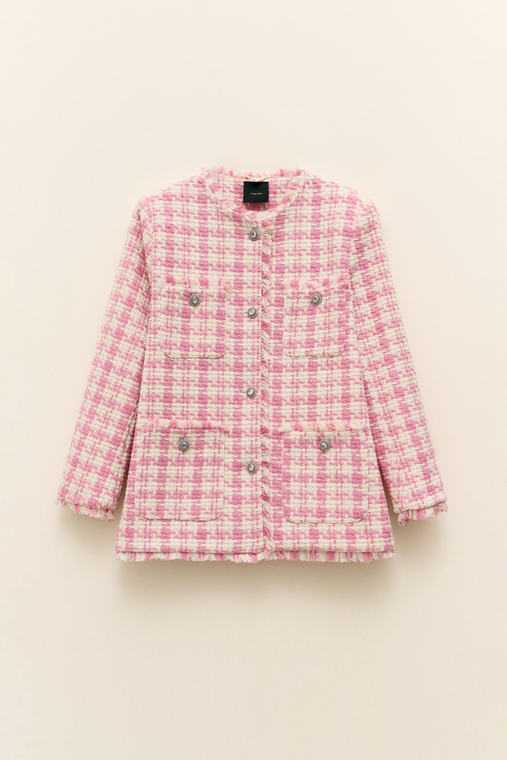 Ένα κομψό σακάκι από tweed ύφανση που συνδυάζει διαχρονική φινέτσα με σύγχρονη γραμμή. Η καθαρή, ίσια σιλουέτα του αναδεικνύεται από τις διακριτικές κρόσσι λεπτομέρειες στα τελειώματα και τα διακοσμητικά κουμπιά που προσθέτουν μια πολυτελή πινελιά. Οι μπροστινές τσέπες ενισχύουν τον structured χαρακτήρα του, ενώ η υφή του υφάσματος χαρίζει βάθος και ενδιαφέρον στο σύνολο. Ιδανικό για εμφανίσεις που ισορροπούν ανάμεσα στο κλασικό και το μοντέρνο, φοριέται από το πρωί έως το βράδυ με effortless κομψότητα.