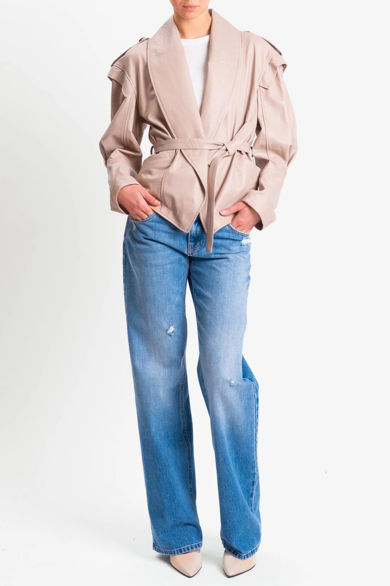 Ένα jacket που ισορροπεί ανάμεσα στη θηλυκότητα και τη δυναμική γραμμή, σχεδιασμένο για εμφανίσεις με χαρακτήρα. Με έντονα δομημένους ώμους και ιδιαίτερες λεπτομέρειες στα μανίκια, δημιουργεί ένα statement silhouette που αναδεικνύει τη μέση χάρη στη ζώνη που δένει μπροστά. Η minimal αισθητική του συνδυάζεται με αρχιτεκτονικές γραμμές, προσφέροντας ένα σύγχρονο, fashion-forward αποτέλεσμα που ξεχωρίζει. Ιδανικό για all-day looks που μεταβαίνουν εύκολα από το πρωί στο βράδυ, αποτελεί το key piece για layering με basic tops ή πιο tailored επιλογές. Συνδύασέ το με straight-leg jeans και ankle boots για effortless chic αποτέλεσμα ή φόρεσέ το πάνω από φόρεμα για πιο elevated, βραδινό look. Για πιο σύγχρονο styling, κράτησέ το δεμένο στη μέση και άφησε το neckline να λειτουργήσει σαν V-cut top.