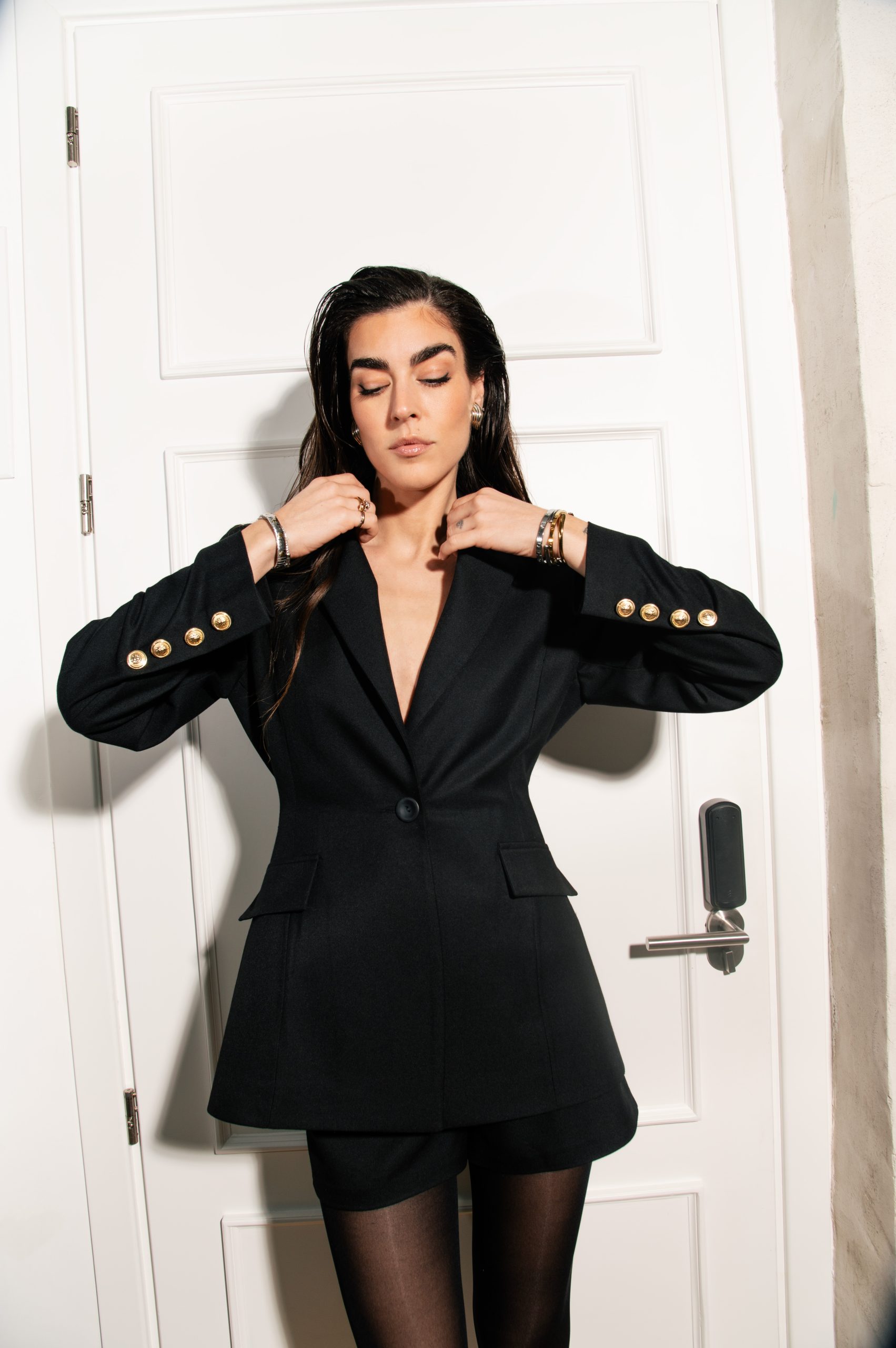 Ένα μαύρο σορτς που δεν χρειάζεται να φωνάξει για να γίνει μούσα. Με καθαρές, απόλυτα κομψές γραμμές που αγκαλιάζουν το σώμα χωρίς υπερβολές, λειτουργεί σαν το πιο διακριτικό αλλά και πιο ισχυρό όπλο στο styling. Minimal αλλά με attitude, το σορτς αυτό είναι η βάση για looks που παίζουν με τα volumes, τα layers και την αντίθεση των υφών. Ένα κομμάτι που δεν επιβάλλεται· υπογραμμίζει — την αυτοπεποίθηση, τη θηλυκότητα και την απόλυτη αίσθηση σύγχρονης κομψότητας.