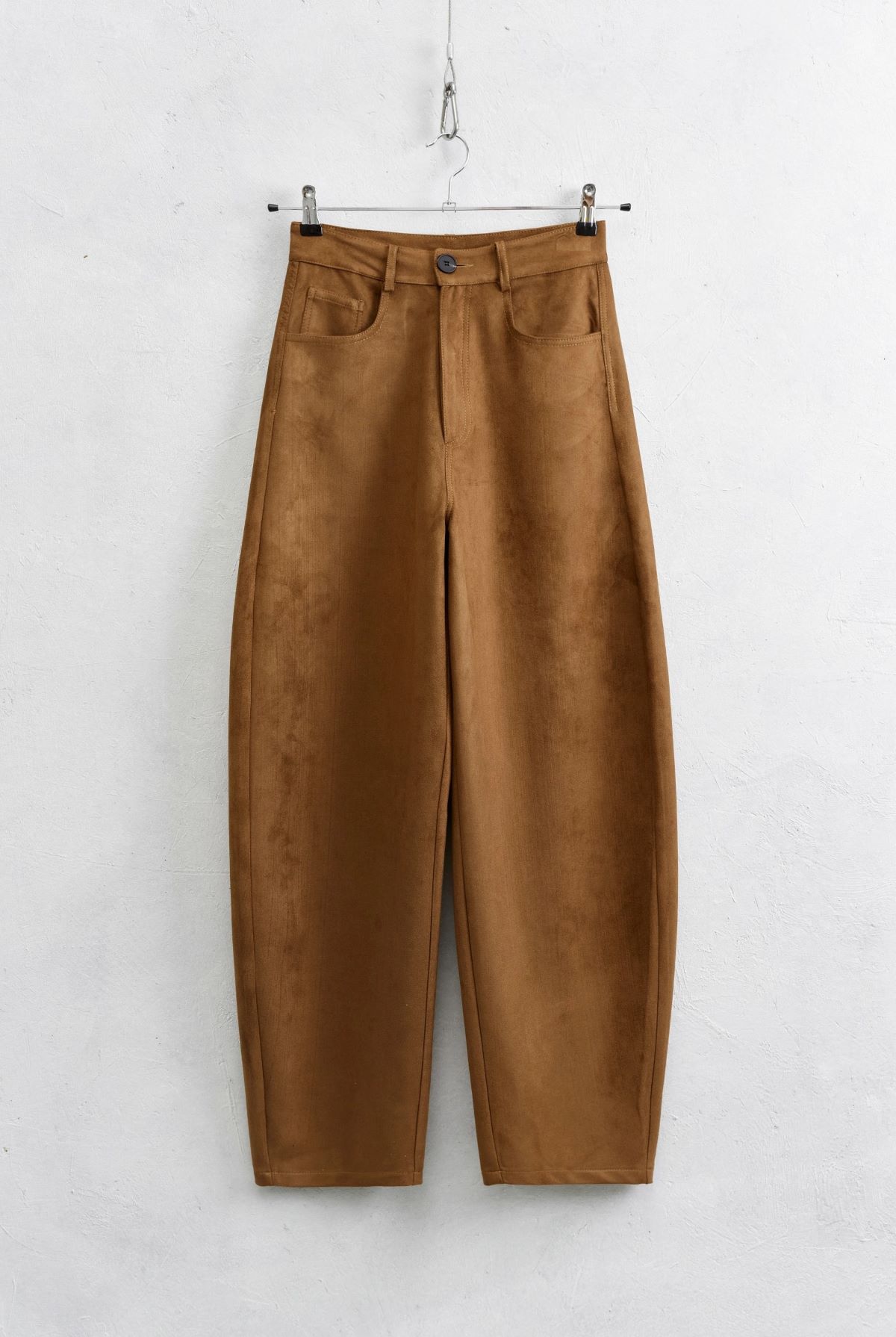 Ένα παντελόνι με μαλακή υφή και φαρδιά γραμμή. Το παντελόνι αυτό μπορεί να συνδυαστεί με το Luca Suede Blazer , που είναι το αντίστοιχο σακάκι, προσφέροντας μια κομψή και πλήρη εμφάνιση, ιδανική για επαγγελματικές ή πιο formal περιστάσεις. Οι πτυχώσεις και οι ραφές του προσφέρουν έναν εκλεπτυσμένο τόνο στο σύνολο.