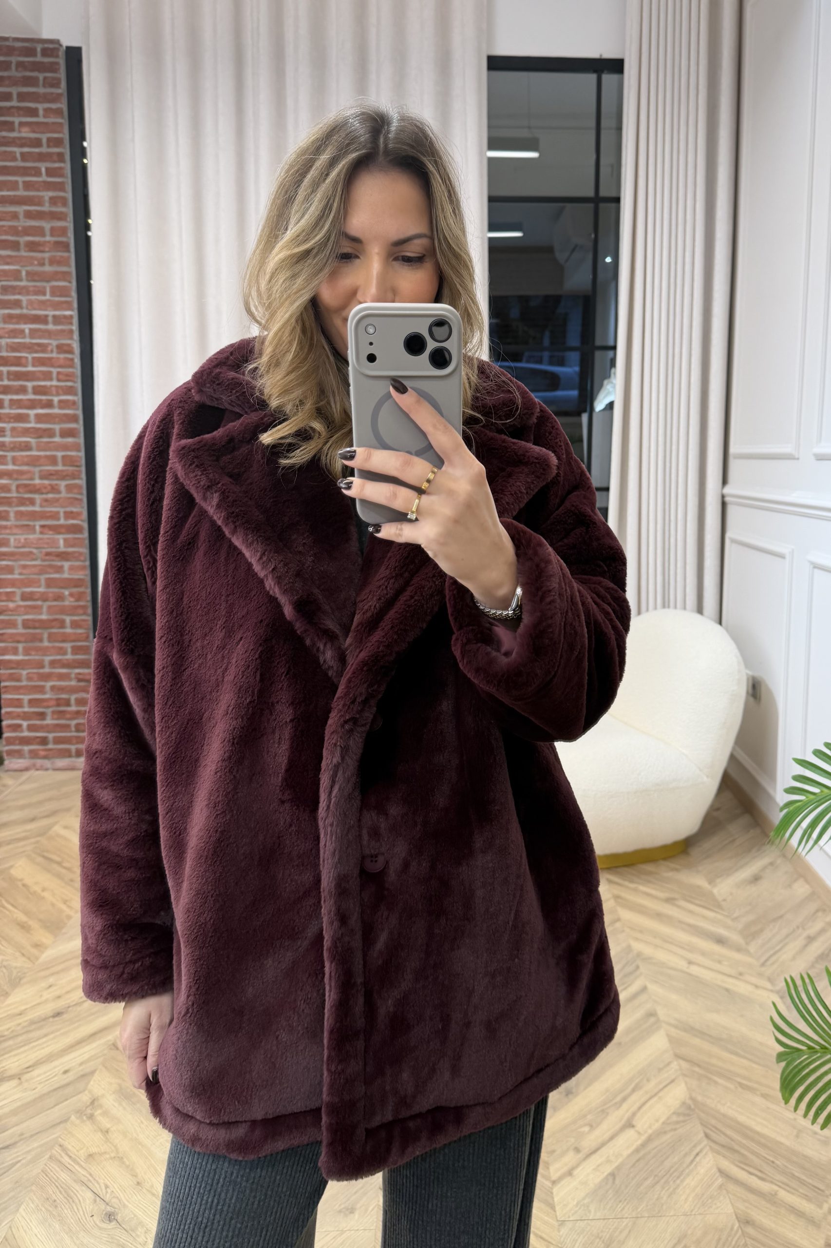 Lydia Fur Coat – Bordeaux