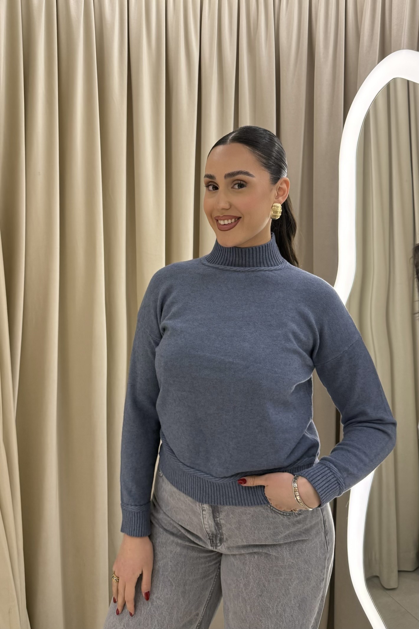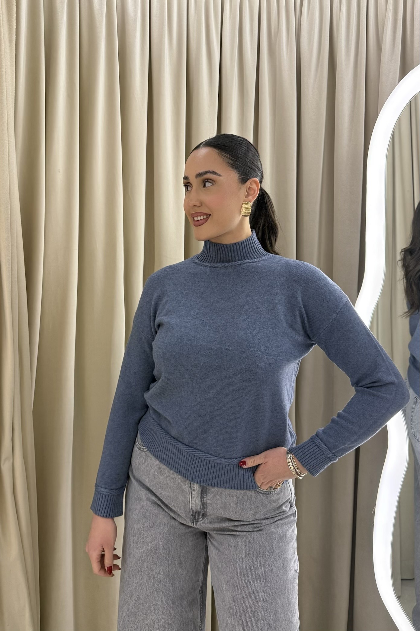 Margot Turtleneck Knit – Sky Blue
