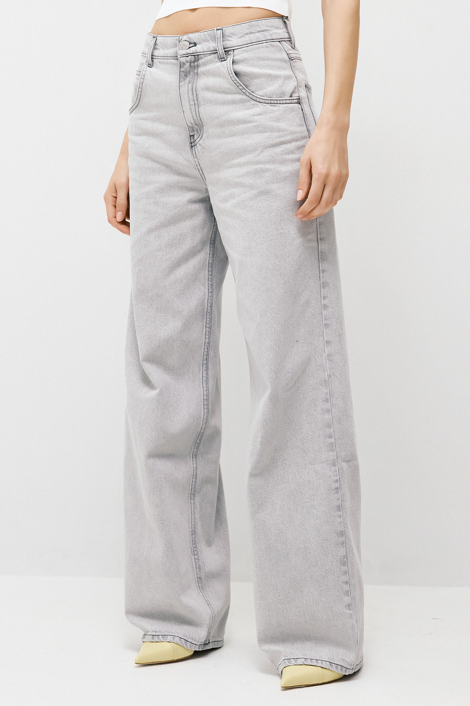 • Mid rise wide leg