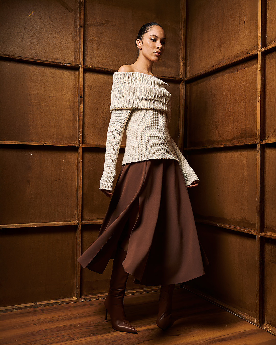 Milan Off Shoulder Knit – Beige
