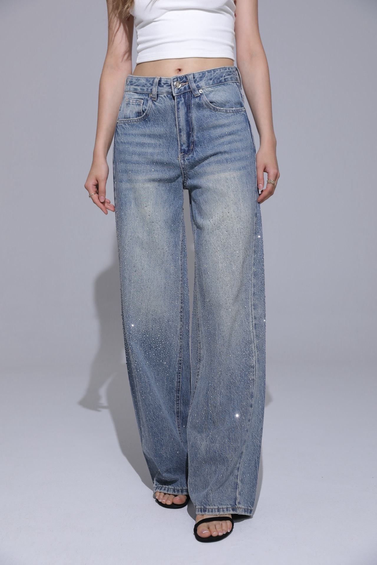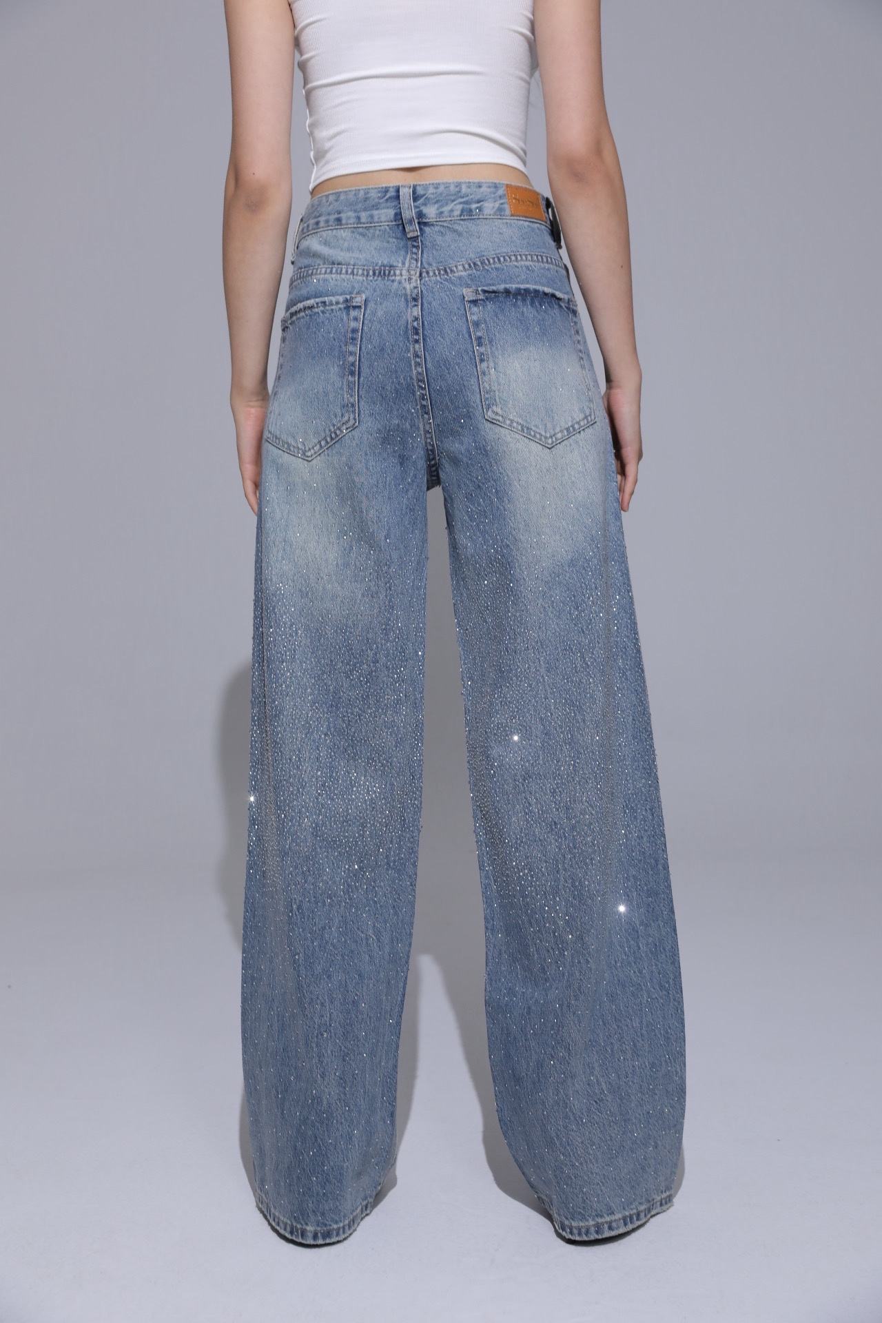 Mina Wide Leg Strass Denim – Light Blue