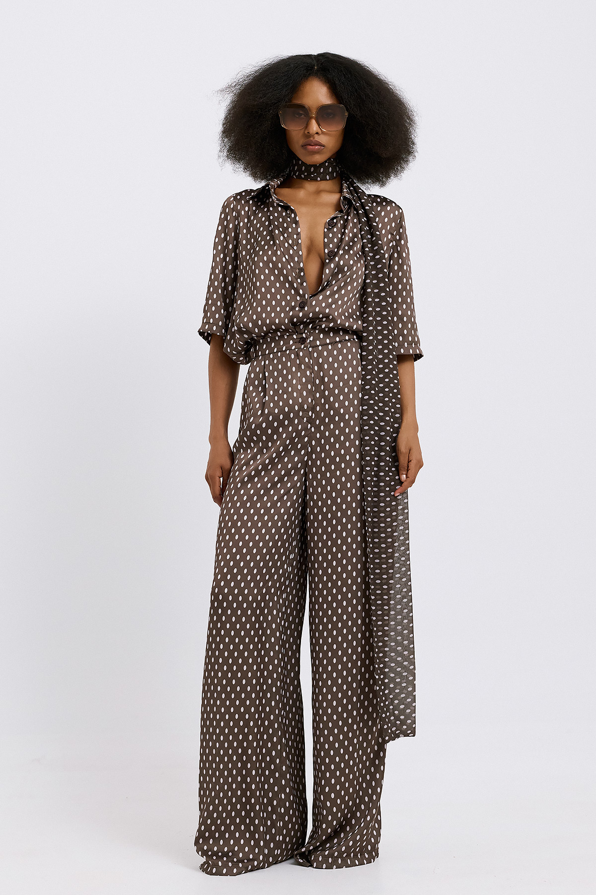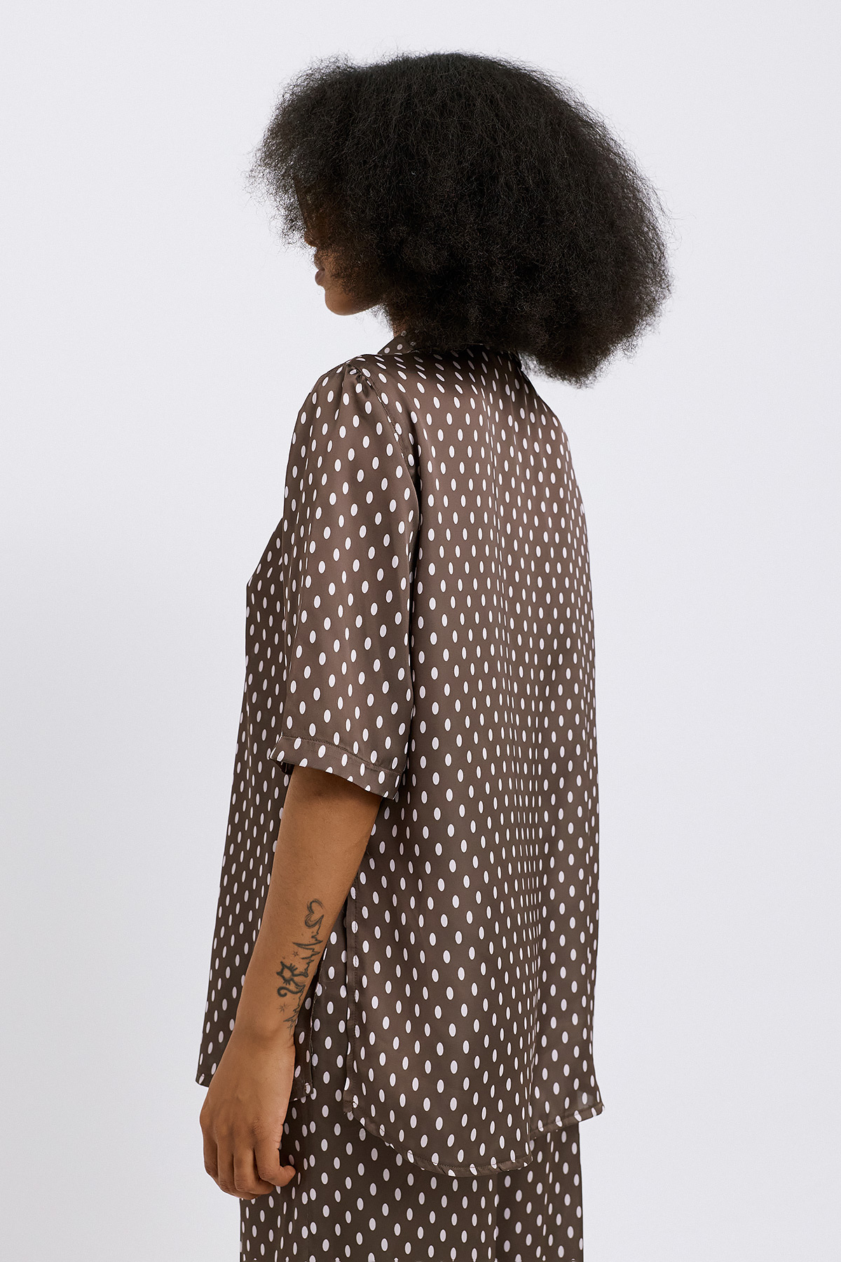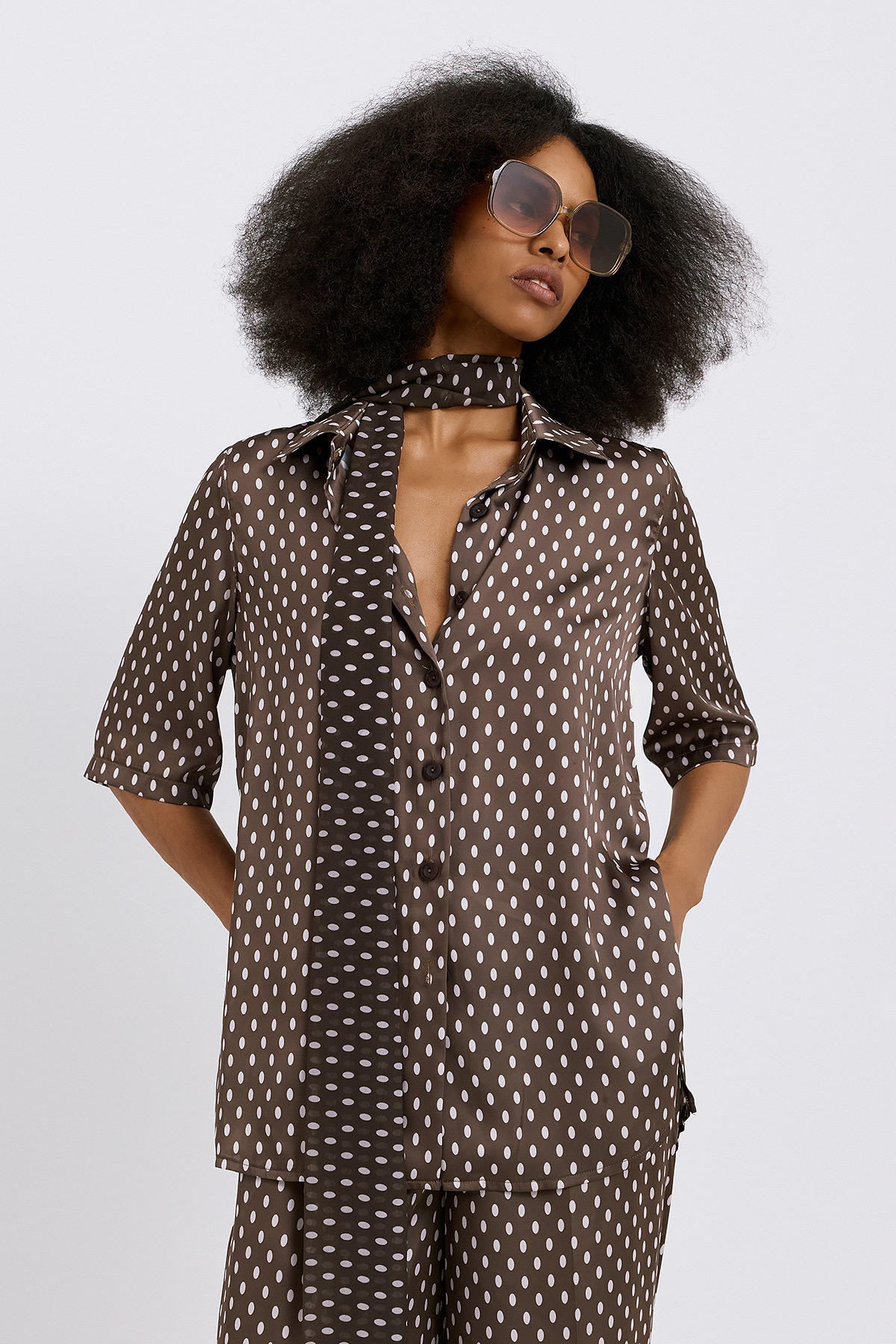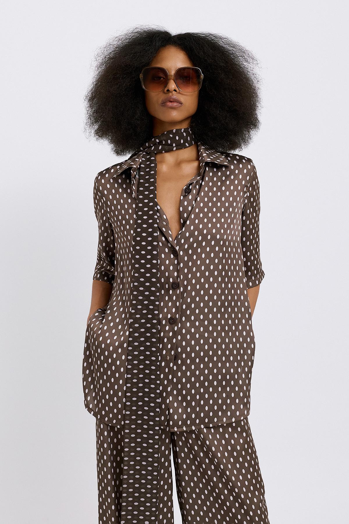 Ένα πουκάμισο που επαναπροσδιορίζει τη διαχρονική κομψότητα μέσα από μια σύγχρονη, χαλαρή γραμμή. Το μοτίβο σε πουά δίνει ρυθμό και χαρακτήρα, ενώ η ρευστή εφαρμογή του δημιουργεί μια αίσθηση ανεπιτήδευτης φινέτσας. Κινείται ανάμεσα στο classic και το μοντέρνο, καθιστώντας το ιδανικό για εμφανίσεις που θέλουν να ξεχωρίζουν με διακριτικό τρόπο. Φόρεσέ το με το αντίστοιχο παντελόνι για ένα ολοκληρωμένο, κομψό σύνολο ή συνδύασέ το με tailored κομμάτια για πιο structured εμφανίσεις. Για πιο casual διάθεση, μπορείς να το αφήσεις ελαφρώς ανοιχτό πάνω από ένα top και να το ολοκληρώσεις με flat παπούτσια ή sneakers.