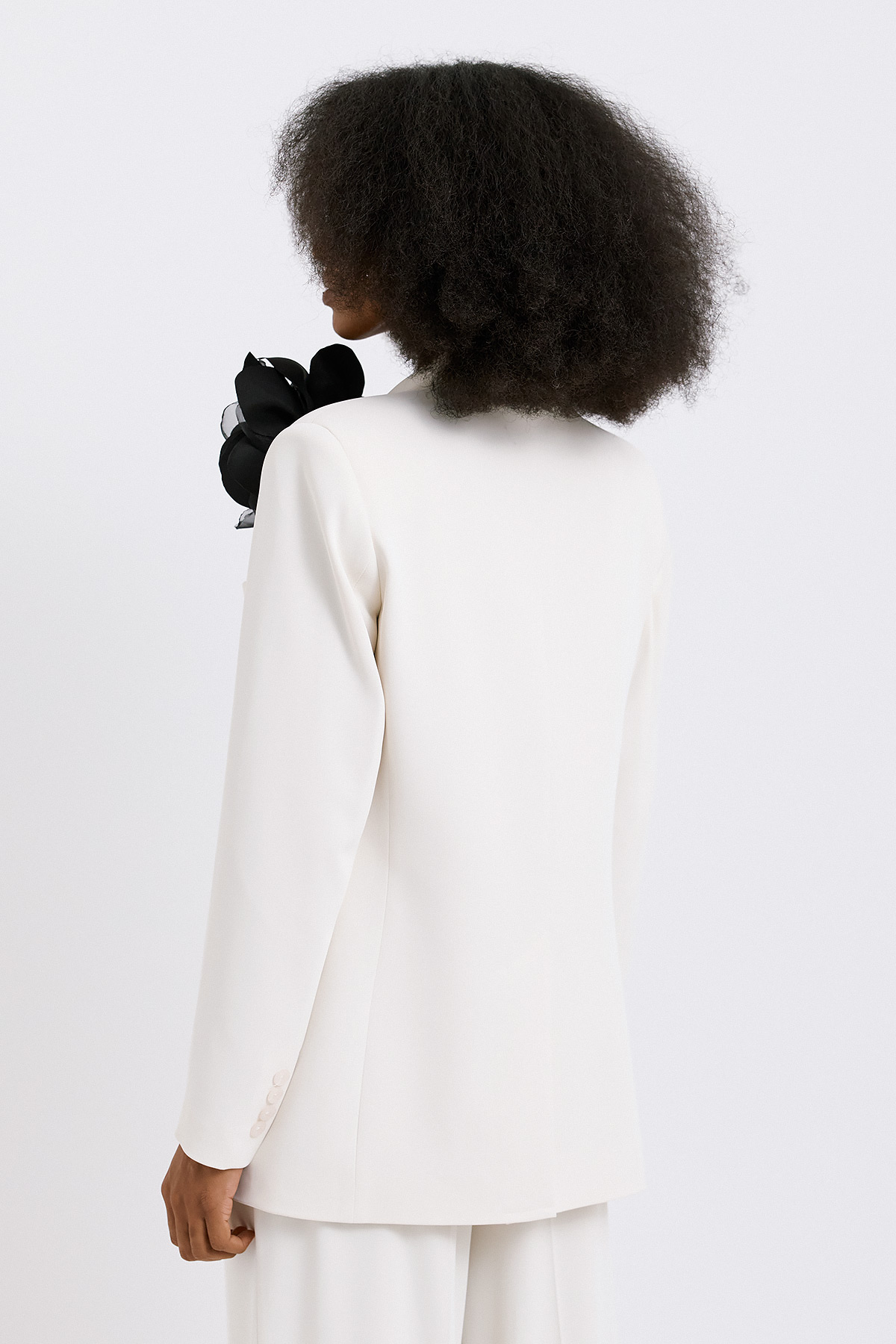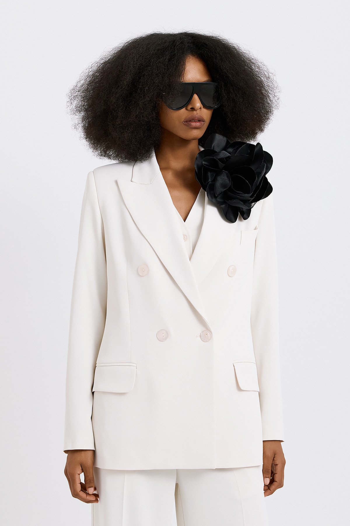 Κλασικό σακάκι σε μαύρη απόχρωση με σύγχρονη tailoring αισθητική που αποπνέει διαχρονική κομψότητα και δυναμισμό. Η διπλή σειρά κουμπιών (double-breasted) και οι καθαρές, δομημένες γραμμές δημιουργούν ένα ισχυρό, κομψό silhouette που αγκαλιάζει το σώμα με ισορροπία. Οι διακριτικές λεπτομέρειες, όπως τα πέτα και οι τσέπες με καπάκι, ενισχύουν τον refined χαρακτήρα του κομματιού, ενώ η άψογη εφαρμογή το καθιστά ιδανικό τόσο για formal εμφανίσεις όσο και για πιο σύγχρονα, fashion-forward looks. Ένα βασικό κομμάτι γκαρνταρόμπας που συνδυάζει ευελιξία και υψηλή αισθητική.