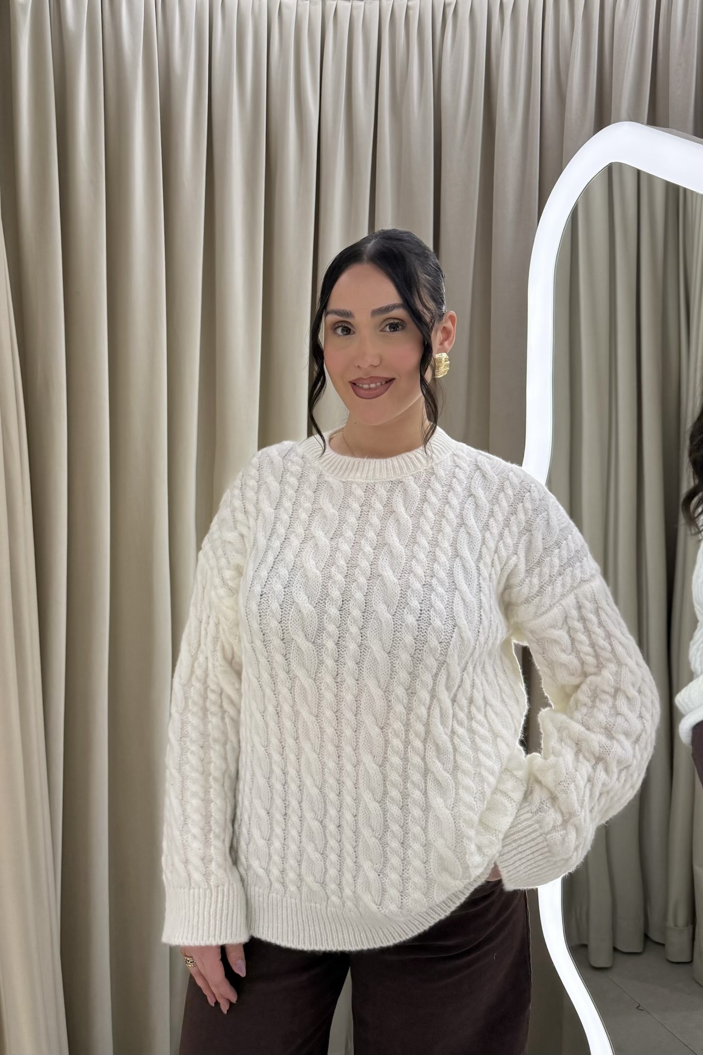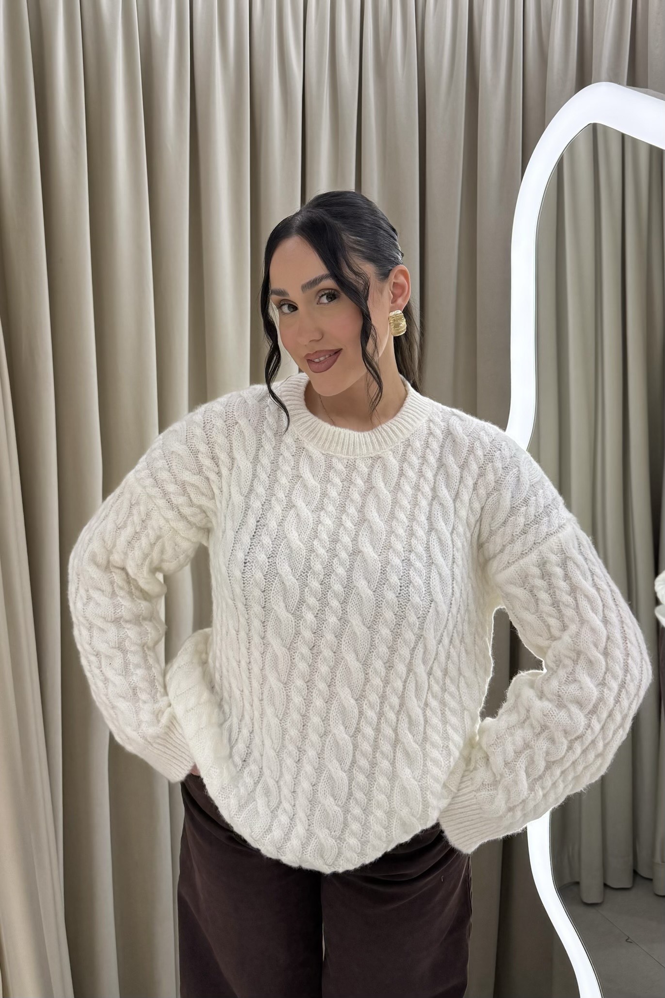 Ένα knit που αποπνέει διακριτική πολυτέλεια και σύγχρονη θηλυκότητα. Η ανάγλυφη πλέξη με πλεξούδες δημιουργεί βάθος και υφή, αγκαλιάζοντας το σώμα με μια χαλαρή, ανεπιτήδευτη εφαρμογή. Οι καθαρές γραμμές και τα προσεγμένα τελειώματα ισορροπούν ανάμεσα στο κλασικό και το μοντέρνο, δίνοντας στο κομμάτι μια διαχρονική αλλά απόλυτα επίκαιρη αισθητική. Φοριέται εύκολα μόνο του ή σε layering, λειτουργώντας ως σταθερή βάση για looks που κινούνται με άνεση από την καθημερινότητα έως πιο επιμελημένες εμφανίσεις.