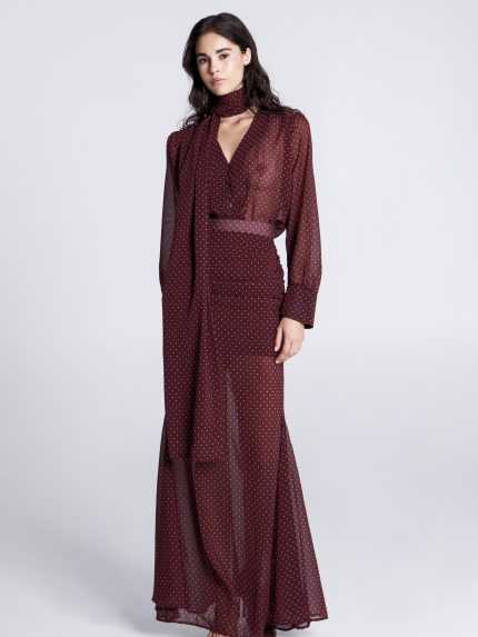 Polka Dots Maxi Skirt – Burgundy