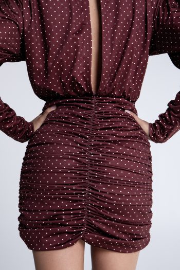Polka Dots Mini Jersey Dress – Burgundy